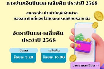 กรณีโอนเงินเข้าบัญชีเงินฝากออมทรัพย์ - ทำรายการถอนได้ที่กลุ่มงานการเงิน ชั้น 2 สำนักงานสหกรณ์ฯ ภายในวันทำการ ...
