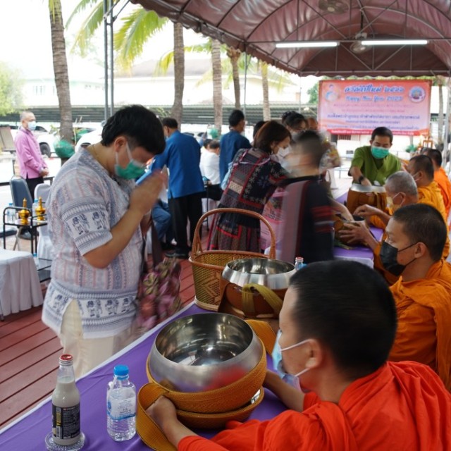 นายไพบูลย์ พุทธวงค์ ประธานกรรมการ สหกรณ์ออมทรัพย์ครูเชียงใหม่ จำกัด พร้อมด้วยคณะกรรมการ ที่ปรึกษาสหกรณ์ฯ ผู้ตรวจสอบกิจการ เจ้าหน้าที่ ร่วมพิธีทำบุญตักบาตรพระสงฆ์ 9 รูป