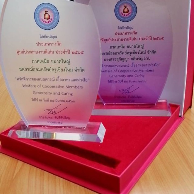 โดยในปีนี้ ทางศูนย์ประสานงาน สสอค. สหกรณ์ออมทรัพย์ครูเชียงใหม่ จำกัด ได้รับคัดเลือก 2 รางวัล คือ รางวัลศูนย์ประสานงานดีเด่น ขนาดใหญ่ (สมาชิกตั้งแต่ 7,200 คน ขึ้นไป) โดยมีนายสุทัศน์ ประสาธน์สุวรรณ์ ประธานศูนย์ประสานงาน สสอค. สหกรณ์ออมทรัพย์ครูเชียงใหม่ จำกัด เป็นผู้แทนรับมอบ และรางวัลเจ้าหน้าที่ศูนย์ประสานงานดีเด่น ขนาดใหญ่ (สมาชิกตั้งแต่ 7,200 คน ขึ้นไป) ได้แก่ นางสาวสุกัญญา กลิ่นรัญจวน โดยมีนายสมาน เผือกอ่อน เลขานุการ ศูนย์ประสานงาน สสอค. สหกรณ์ออมทรัพย์ครูเชียงใหม่ จำกัด เป็นผู้แทนรับมอบ ณ ห้องประชุมริชมอนด์ แกรนด์ บอลรูม ชั้น 6 โรงแรมแกรนด์ริชมอนด์ สไตลิช คอนเวนชั่น จังหวัดนนทบุรี
