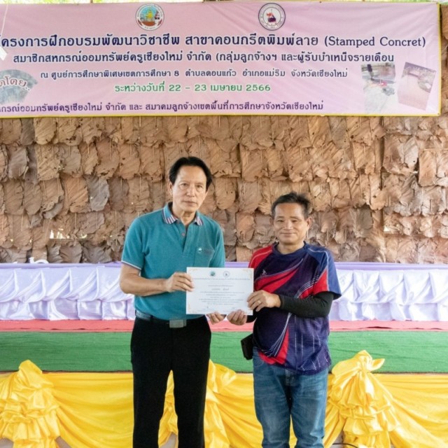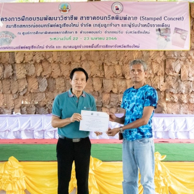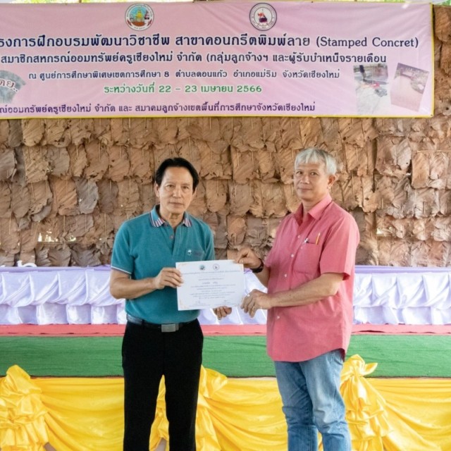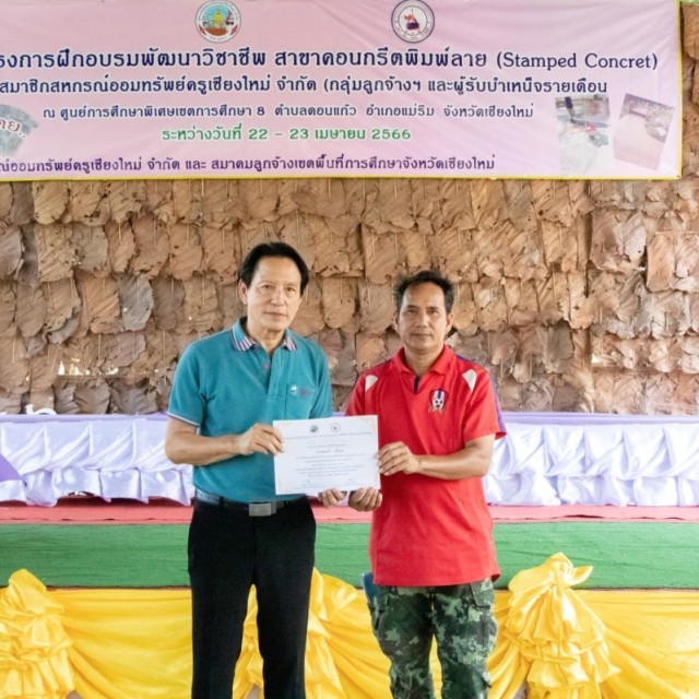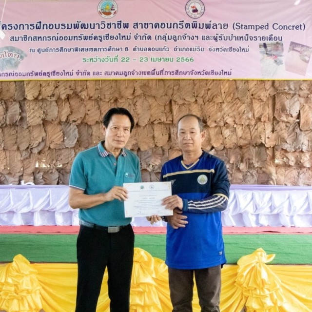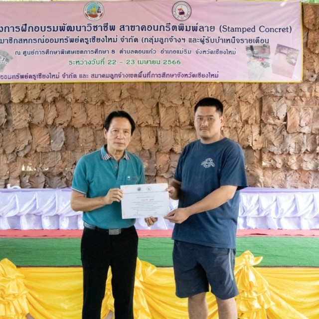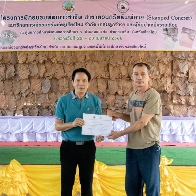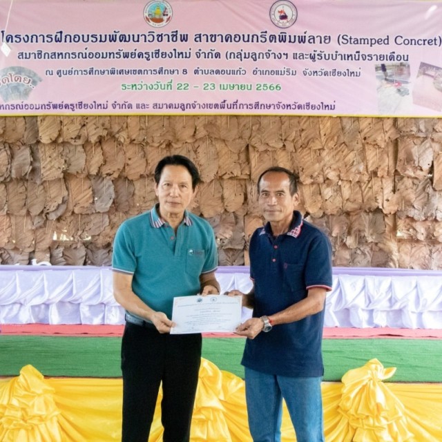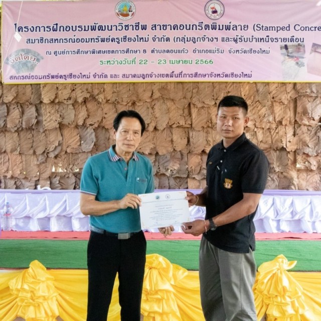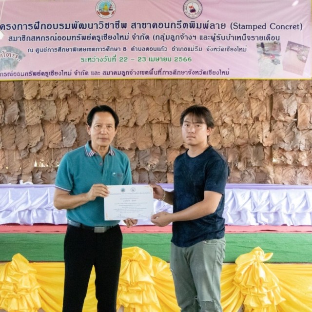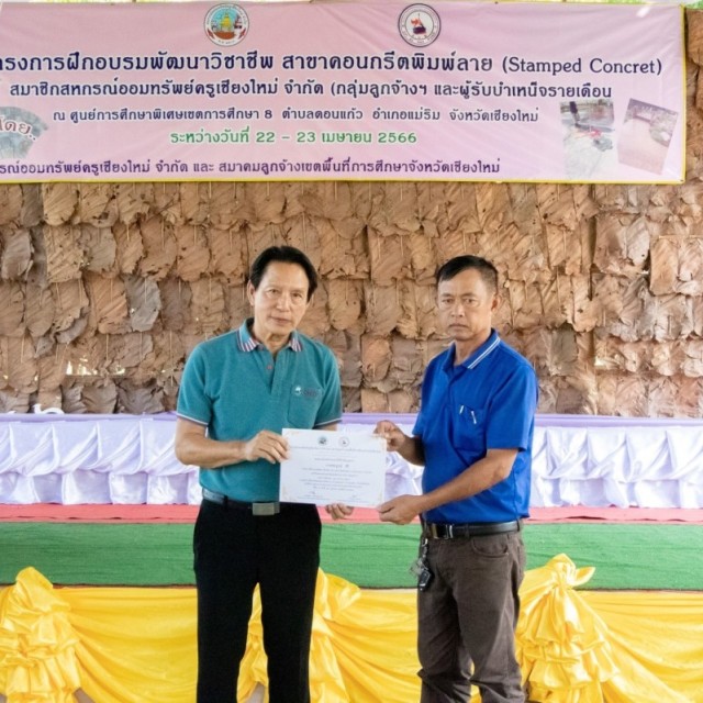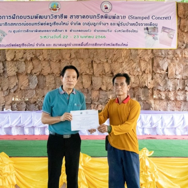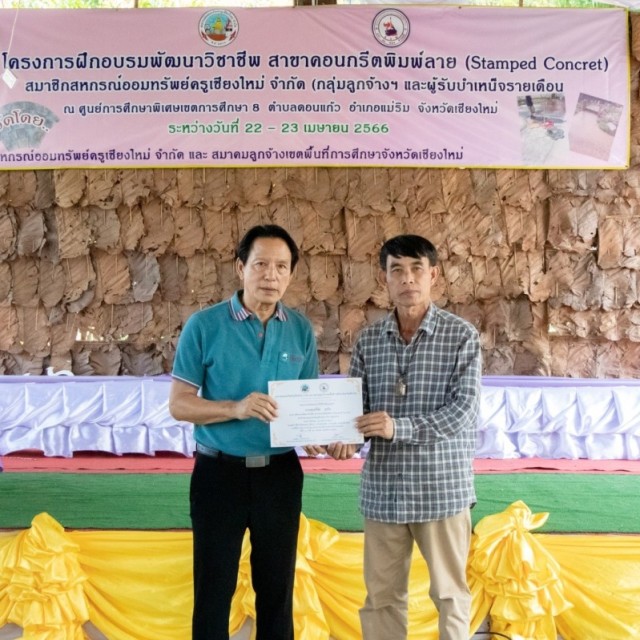 นายสุทัศน์ ประสาธน์สุวรรณ์ ประธานกรรมการ สหกรณ์ออมทรัพย์ครูเชียงใหม่ จำกัด เป็นประธานในพิธีเปิดโครงการอบรมพัฒนาวิชาชีพสหกรณ์ออมทรัพย์ครูเชียงใหม่ จำกัด กลุ่มลูกจ้างประจำและผู้รับบำเหน็จรายเดือน ประจำปี 2566 หลักสูตร "งานคอนกรีตพิมพ์ลาย (Stamped Concrete)" ระหว่างวันที่ 22-23 เมษายน 2566 ณ ศูนย์การศึกษาพิเศษเขตการศึกษา 8 อำเภอแม่ริม จังหวัดเชียงใหม่ โดยมีวัตถุประสงค์เพื่อให้สมาชิกผู้เข้ารับการฝึกอบรมได้นำความรู้ที่ได้รับนำไปปฏิบัติเป็นอาชีพเสริม เพิ่มรายได้ให้แก่ตนเองและครอบครัว โดยสหกรณ์ฯ ได้สนับสนุนงบประมาณในการดำเนินงานตามโครงการฝึกอบรมวิชาชีพเสริมแก่สมาชิกกลุ่มลูกจ้างประจำในครั้งนี้ เป็นเงินจำนวน 100,000 บาท