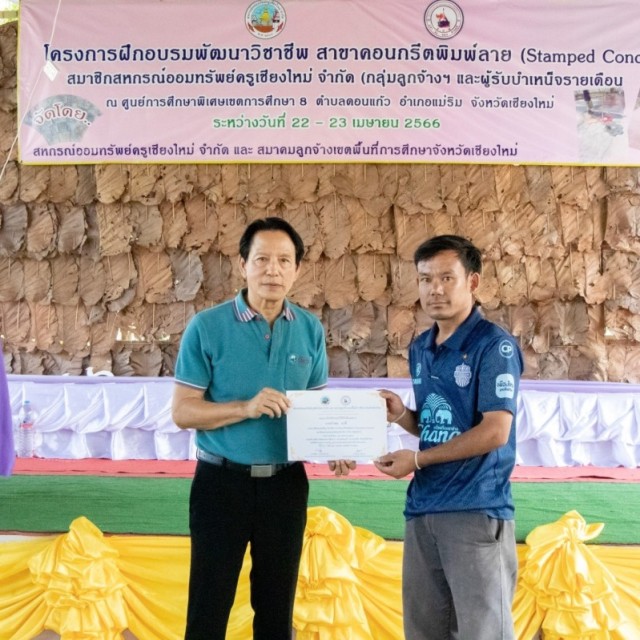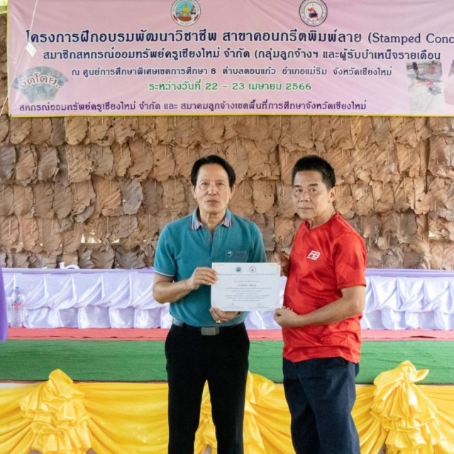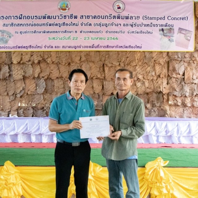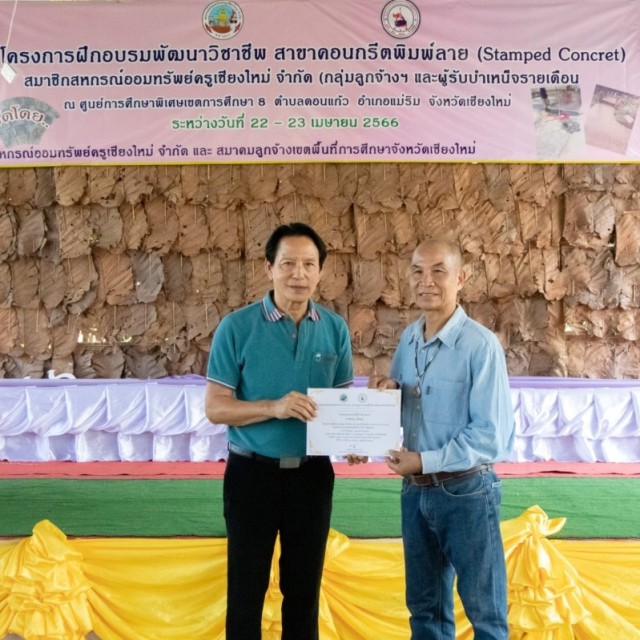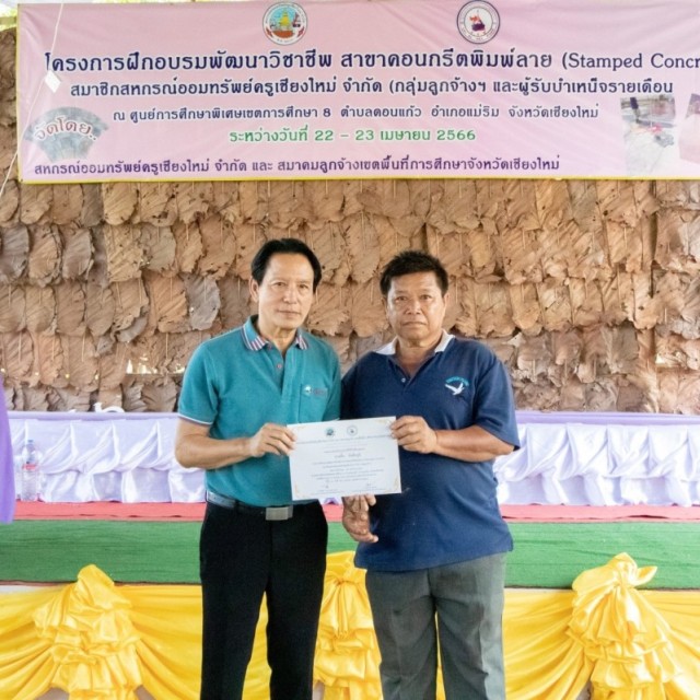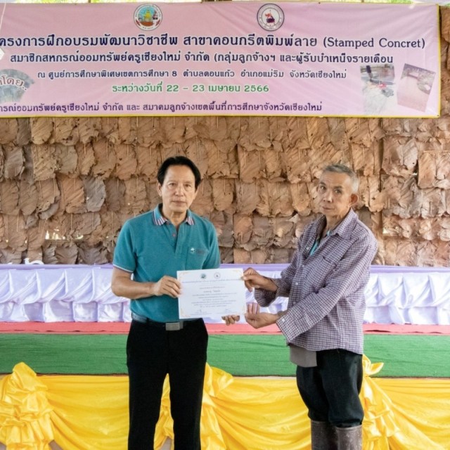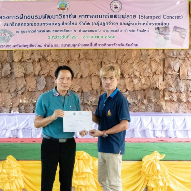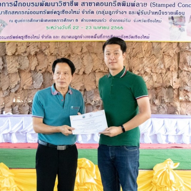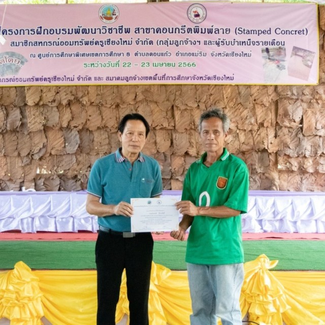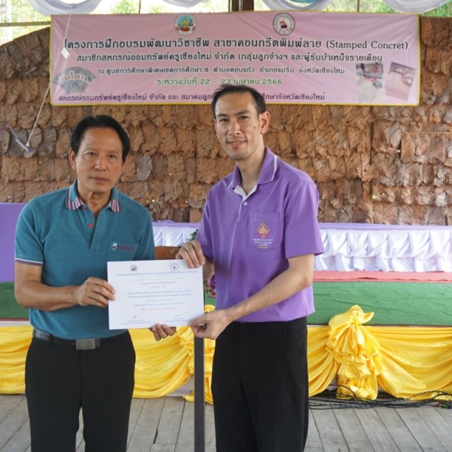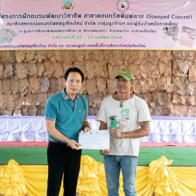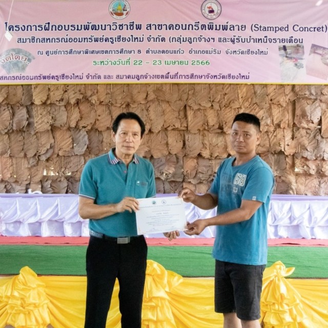 นายสุทัศน์ ประสาธน์สุวรรณ์ ประธานกรรมการ สหกรณ์ออมทรัพย์ครูเชียงใหม่ จำกัด เป็นประธานในพิธีเปิดโครงการอบรมพัฒนาวิชาชีพสหกรณ์ออมทรัพย์ครูเชียงใหม่ จำกัด กลุ่มลูกจ้างประจำและผู้รับบำเหน็จรายเดือน ประจำปี 2566 หลักสูตร "งานคอนกรีตพิมพ์ลาย (Stamped Concrete)" ระหว่างวันที่ 22-23 เมษายน 2566 ณ ศูนย์การศึกษาพิเศษเขตการศึกษา 8 อำเภอแม่ริม จังหวัดเชียงใหม่ โดยมีวัตถุประสงค์เพื่อให้สมาชิกผู้เข้ารับการฝึกอบรมได้นำความรู้ที่ได้รับนำไปปฏิบัติเป็นอาชีพเสริม เพิ่มรายได้ให้แก่ตนเองและครอบครัว โดยสหกรณ์ฯ ได้สนับสนุนงบประมาณในการดำเนินงานตามโครงการฝึกอบรมวิชาชีพเสริมแก่สมาชิกกลุ่มลูกจ้างประจำในครั้งนี้ เป็นเงินจำนวน 100,000 บาท