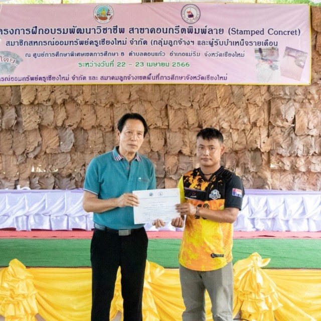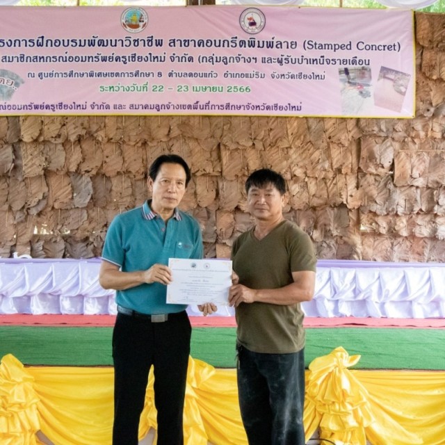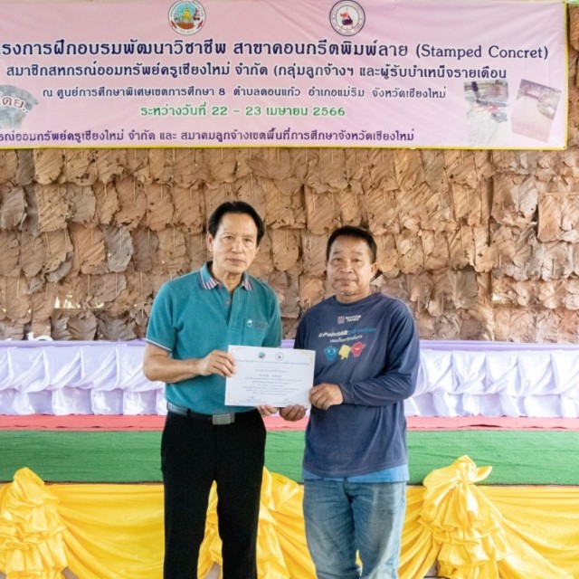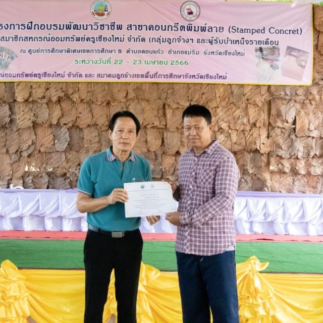 โครงการอบรมพัฒนาวิชาชีพ กลุ่มลูกจ้างประจำและผู้รับบำเหน็จรายเดือน หลักสูตร "งานคอนกรีตพิมพ์ลาย (Stamped Concrete)"