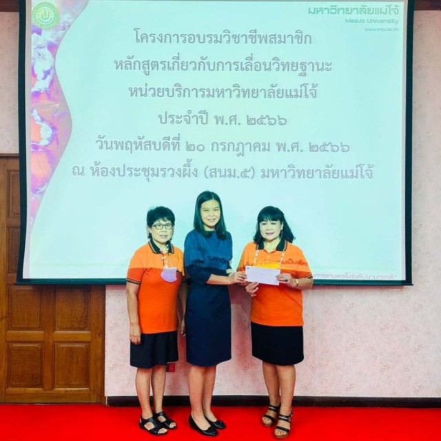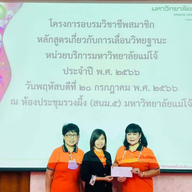 มอบเงินสนับสนุนโครงการอบรมวิชาชีพสมาชิก หลักสูตรเกี่ยวกับการเลื่อนวิทยฐานะ ม.แม่โจ้
