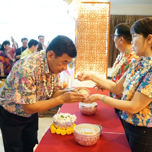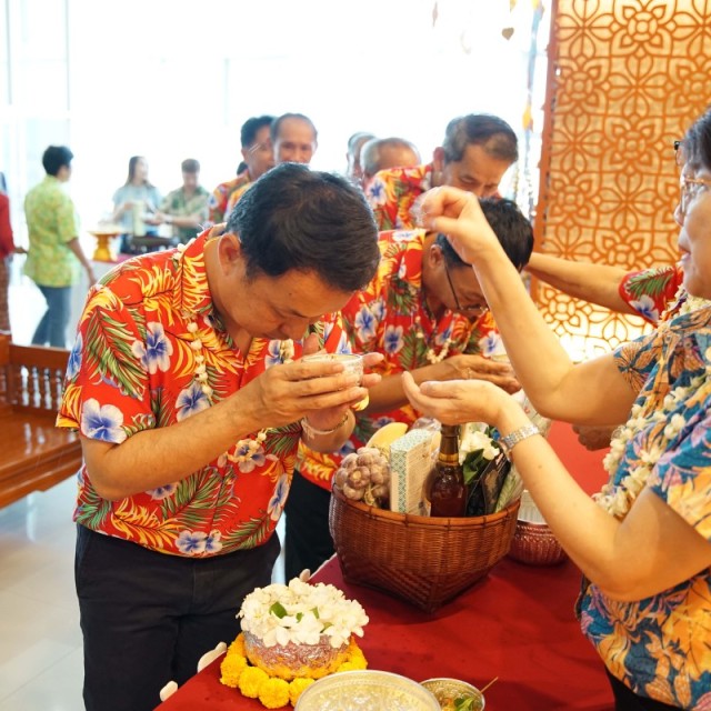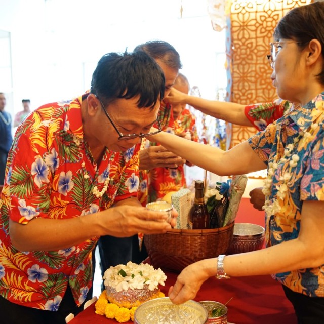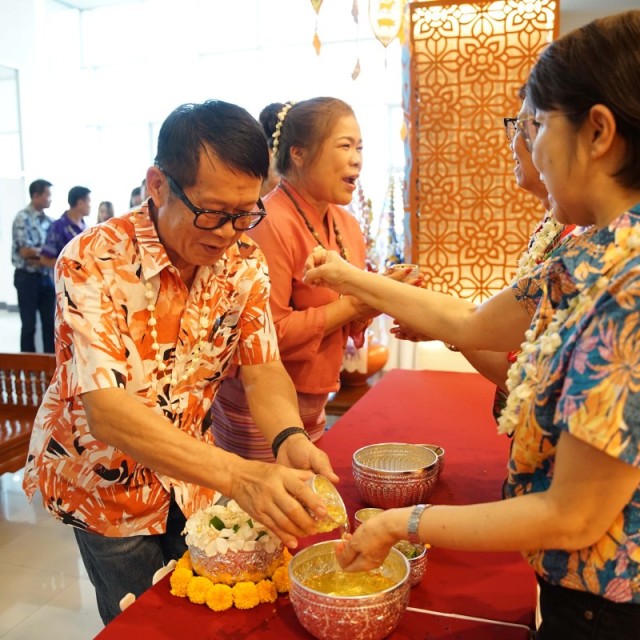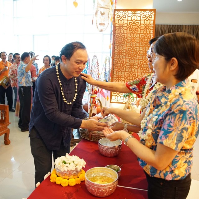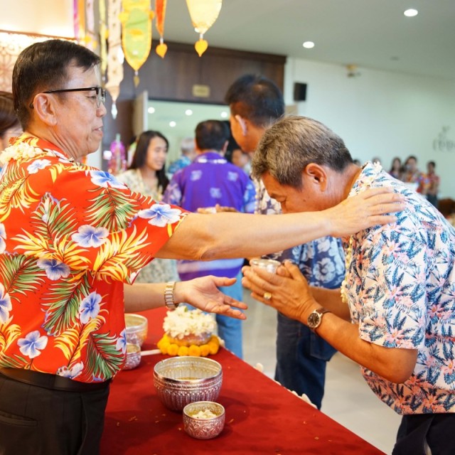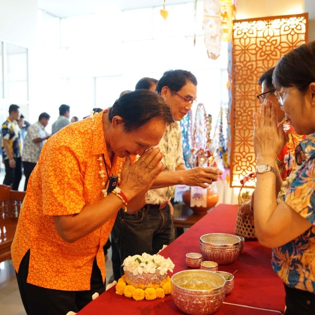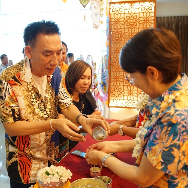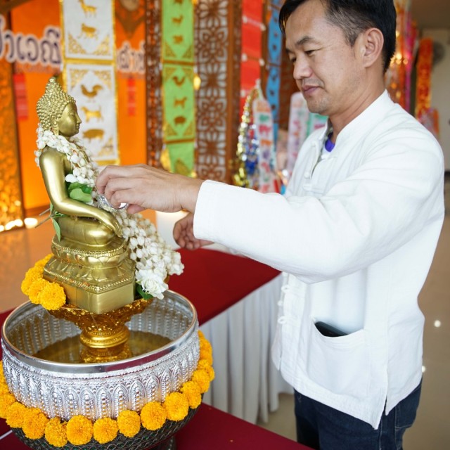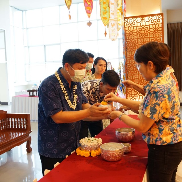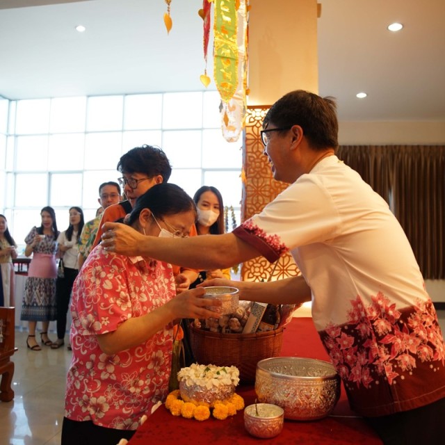 ช่วงบ่าย นายวิวิศน์ รัตตนิทัศน์ ประธานกรรมการการศึกษา สหกรณ์ออมทรัพย์ครูเชียงใหม่ จำกัด นำคณะกรรมการดำเนินการ ผู้ตรวจสอบกิจการ ประธานกรรมการหน่วยบริการ ฝ่ายจัดการ และแขกผู้มีเกียรติ ร่วมพิธีสระเกล้าดำหัว โดยมีเครื่องสระเกล้าดำหัวที่งดงามตามประเพณีแบบล้านนา เพื่อขอสุมาคารวะ แสดงความเคารพ และขอพรจาก นายสุทัศน์ ประสาธน์สุวรรณ์ ประธานกรรมการ และภรรยา เพื่อความเป็นสิริมงคล เนื่องในเทศกาลสงกรานต์ “ป๋าเวณีปี๋ใหม่เมือง” ซึ่งเป็นส่วนหนึ่งในโครงการส่งเสริมวัฒนธรรมองค์กรเนื่องในวันสำคัญ ประจำปี 2567 พร้อมกันนี้ นางสาวธิดา ด้วงมะโน รองผู้จัดการ นำคณะฝ่ายจัดการร่วมพิธีสระเกล้าดำหัวและขอพรจาก นายธนากร เม่นแต้ม ผู้จัดการ ณ ลานหน้าห้องประชุมเอื้องคำหลวง ชั้น 3 สำนักงานสหกรณ์ฯ