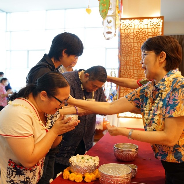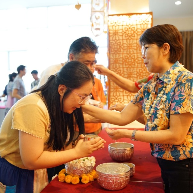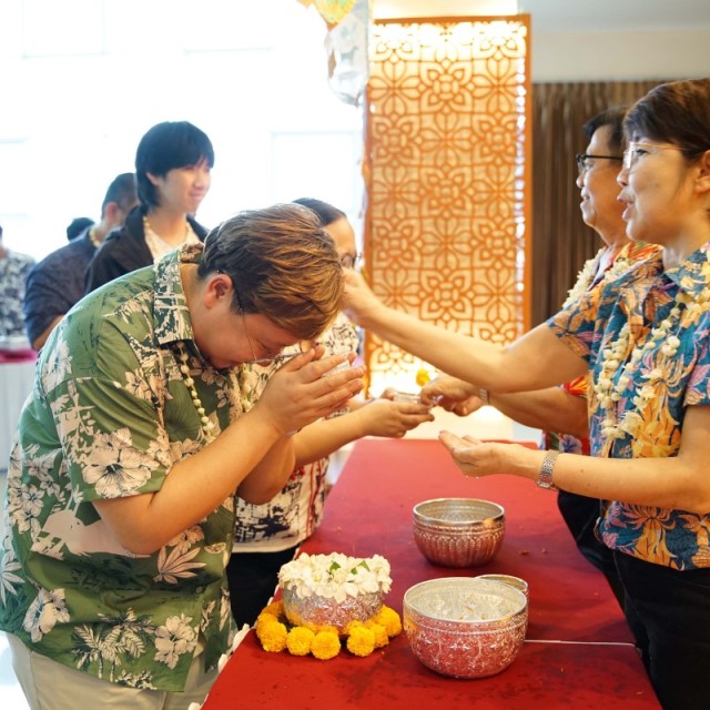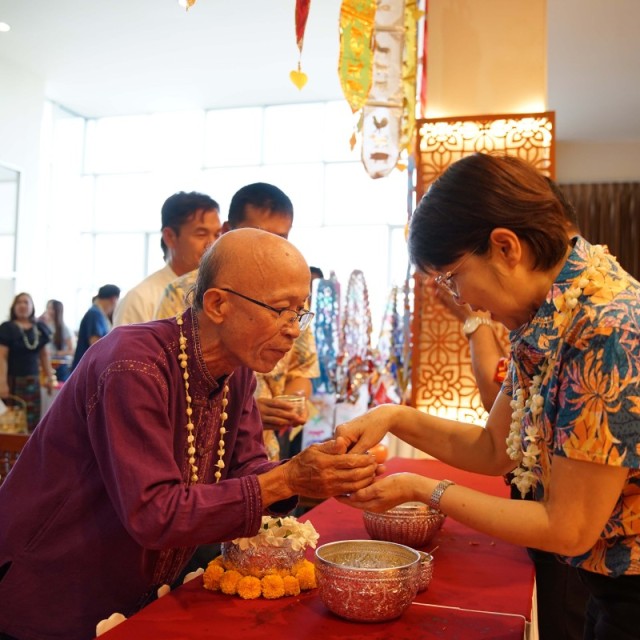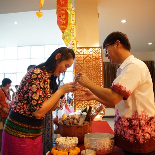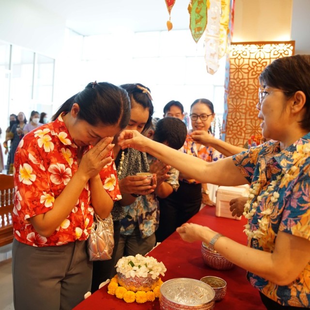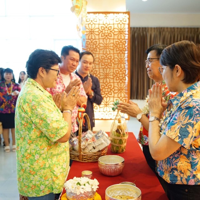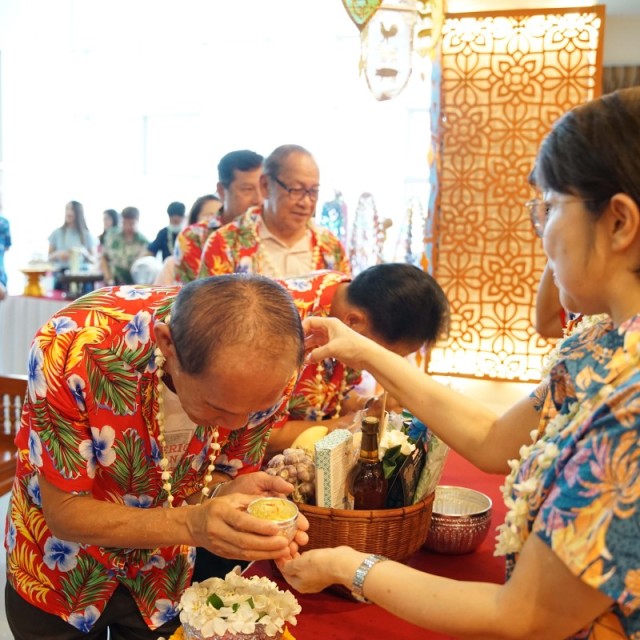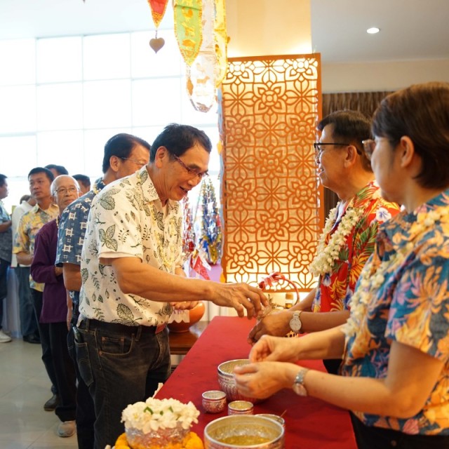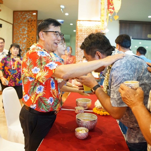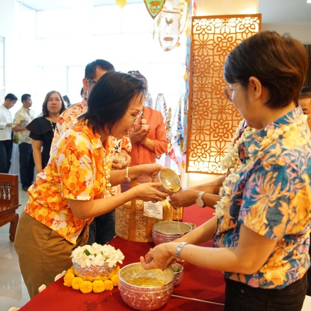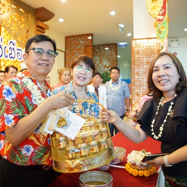 ช่วงบ่าย นายวิวิศน์ รัตตนิทัศน์ ประธานกรรมการการศึกษา สหกรณ์ออมทรัพย์ครูเชียงใหม่ จำกัด นำคณะกรรมการดำเนินการ ผู้ตรวจสอบกิจการ ประธานกรรมการหน่วยบริการ ฝ่ายจัดการ และแขกผู้มีเกียรติ ร่วมพิธีสระเกล้าดำหัว โดยมีเครื่องสระเกล้าดำหัวที่งดงามตามประเพณีแบบล้านนา เพื่อขอสุมาคารวะ แสดงความเคารพ และขอพรจาก นายสุทัศน์ ประสาธน์สุวรรณ์ ประธานกรรมการ และภรรยา เพื่อความเป็นสิริมงคล เนื่องในเทศกาลสงกรานต์ “ป๋าเวณีปี๋ใหม่เมือง” ซึ่งเป็นส่วนหนึ่งในโครงการส่งเสริมวัฒนธรรมองค์กรเนื่องในวันสำคัญ ประจำปี 2567 พร้อมกันนี้ นางสาวธิดา ด้วงมะโน รองผู้จัดการ นำคณะฝ่ายจัดการร่วมพิธีสระเกล้าดำหัวและขอพรจาก นายธนากร เม่นแต้ม ผู้จัดการ ณ ลานหน้าห้องประชุมเอื้องคำหลวง ชั้น 3 สำนักงานสหกรณ์ฯ