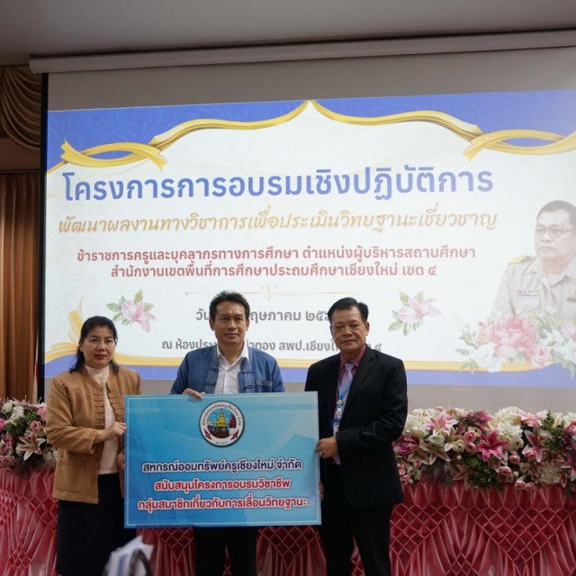 มอบเงินสนับสนุน การอบรมเชิงปฏิบัติการพัฒนาผลงานทางวิชาการฯ ตำแหน่งผู้บริหารสถานศึกษา และตำแหน่งศึกษานิเทศก์ สพป.เชียงใหม่ เขต 4
