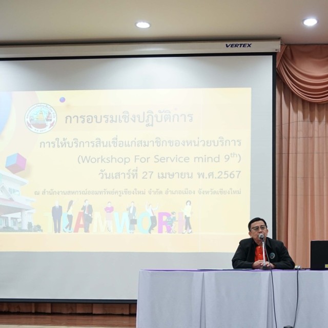 เมื่อวันที่ 27 เมษายน 2567 นายสุทัศน์ ประสาธน์สุวรรณ์ ประธานกรรมการ สหกรณ์ออมทรัพย์ครูเชียงใหม่ จำกัด เป็นประธานเปิดการอบรมและบรรยายพิเศษในโครงการอบรมเชิงปฏิบัติการ การให้สินเชื่อแก่สมาชิกของหน่วยบริการ “Workshop for Service mind 9