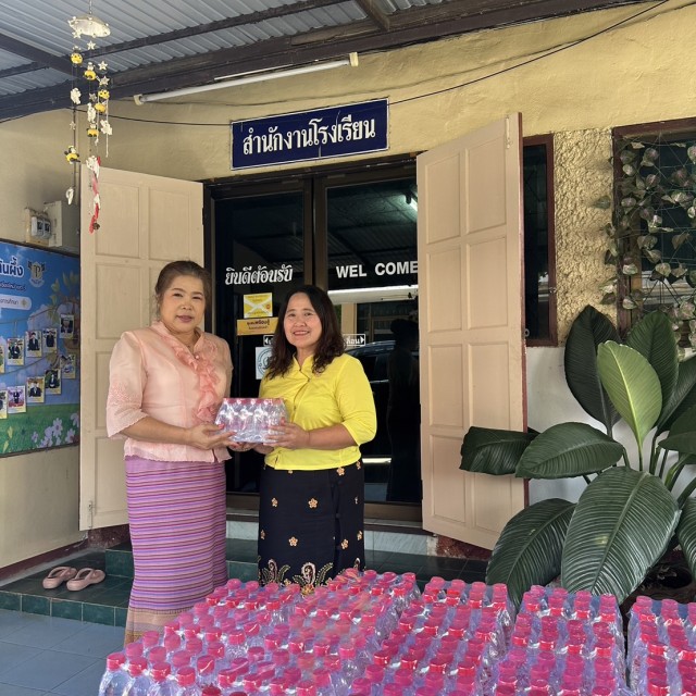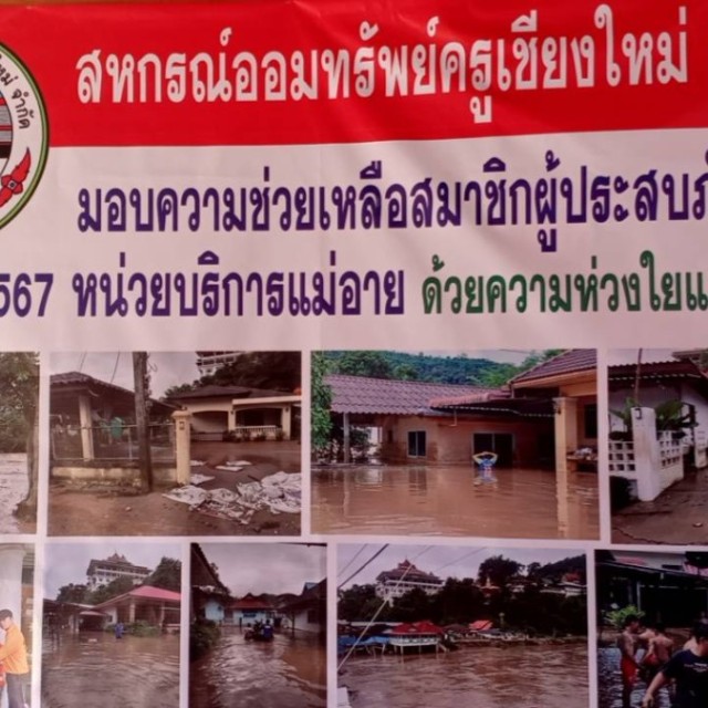 นางศรีวรรณ์ ชาญกิจ ประธานกรรมการหน่วยบริการอำเภอฝาง และนายสนั่น กันธพงษ์ ประธานกรรมการหน่วยบริการอำเภอแม่อาย เป็นตัวแทนสหกรณ์ออมทรัพย์ครูเชียงใหม่ จำกัด มอบน้ำดื่มช่วยเหลือสมาชิกและผู้ประสบภัยน้ำท่วมในอำเภอฝางและอำเภอแม่อาย จังหวัดเชียงใหม่ เพื่อช่วยบรรเทาความเดือดร้อนของผู้ประสบภัย
