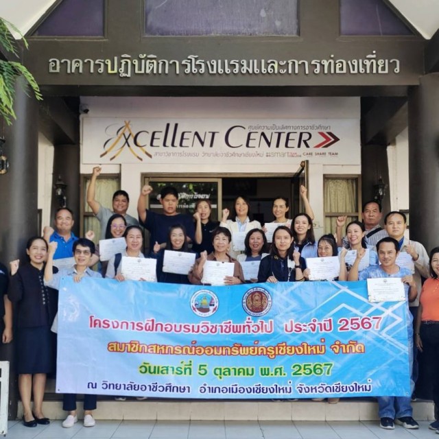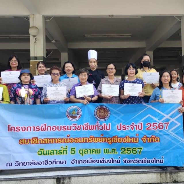 ทั้งนี้ ได้รับเกียรติจากคณะครูวิทยาลัยอาชีวศึกษาเชียงใหม่ ให้ความรู้แก่สมาชิกสหกรณ์ฯ จำนวน 150 คน โดยแบ่งการอบรมเป็น 2 หมวด จำนวน 6 หลักสูตร ได้แก่ หมวดขนมคาวหวาน/เครื่องดื่ม และหมวดการประดิษฐ์ตกแต่ง ณ วิทยาลัยอาชีวศึกษาเชียงใหม่ อำเภอเมือง จังหวัดเชียงใหม่
