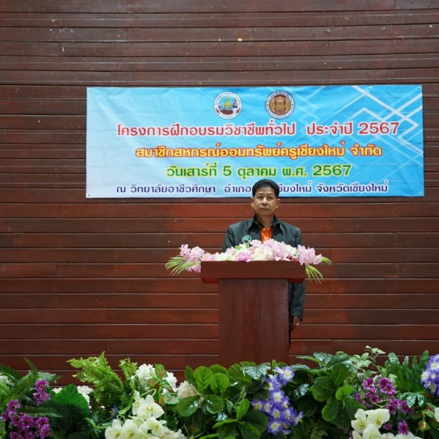 เมื่อวันที่ 5 ตุลาคม 2567 นายสมาน เผือกอ่อน รองประธานกรรมการ สหกรณ์ออมทรัพย์ครูเชียงใหม่ จำกัด เป็นประธานในพิธีเปิดโครงการอบรมวิชาชีพเสริมเพิ่มรายได้สำหรับสมาชิก ประจำปี 2567 พร้อมด้วยคณะกรรมการการศึกษาและฝ่ายจัดการ โดยมีนายวสันต์ ขอดศิริ กรรมการการศึกษา กล่าวรายงาน