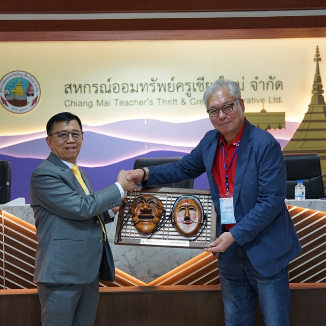 นายสุทัศน์ ประสาธน์สุวรรณ์ ประธานกรรมการ สหกรณ์ออมทรัพย์ครูเชียงใหม่ จำกัด พร้อมด้วยคณะกรรมการดำเนินการ และฝ่ายจัดการ ให้การต้อนรับคณะผู้นำสหกรณ์แห่งสาธารณรัฐเกาหลี กรรมการดำเนินการ และฝ่ายจัดการ ชสอ. จำนวน 25 คน ที่เข้าศึกษาดูงานและเยี่ยมชมกิจการตามโครงการแลกเปลี่ยนผู้นำสหกรณ์เกาหลี-ไทย ประจำปี 2567 ภายใต้บันทึกข้อตกลงทวิภาคีระหว่างชุมนุมสหกรณ์ออมทรัพย์แห่งประเทศไทย จำกัด (ชสอ.) และชุมนุมสหกรณ์ออมทรัพย์ชุมชนแห่งสาธารณรัฐเกาหลี (The Korean Federation of Community Credit Cooperatives : KFCC) เมื่อวันที่ 11 พฤศจิกายน 2567 ณ ห้องประชุมเอื้องเงิน ชั้น 2 สำนักงานสหกรณ์ออมทรัพย์ครูเชียงใหม่ จำกัด