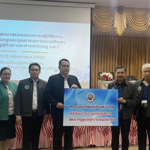 ในวันพฤหัสบดีที่ 15 พฤษภาคม 2568 นายอดิศร คันธรส ตำแหน่ง รองประธานกรรมการคนที่ 2 ได้รับมอบหมายเป็นวิทยากรให้ความรู้เกี่ยวกับสหกรณ์ออมทรัพย์ ในโครงการอบรมเชิงปฏิบัติการพัฒนาสมรรถนะการปฏิบัติงานของข้าราชการครูและบุคลากรทางการศึกษา ตำแหน่งครูผู้ช่วย และครู คศ.1 สำนักงานเขตพื้นที่การศึกษาประถมศึกษาเชียงใหม่ เขต 4 ณ ห้องประชุมสันป่าตอง สำนักงานเขตพื้นที่การศึกษาประถมศึกษาเชียงใหม่ เขต 4 พร้อมมอบเงินสนับสนุนโครงการฯ จำนวน 15,000 บาท