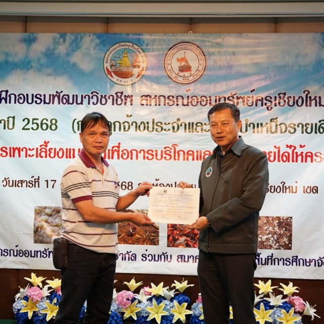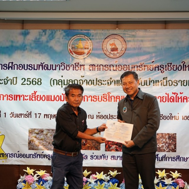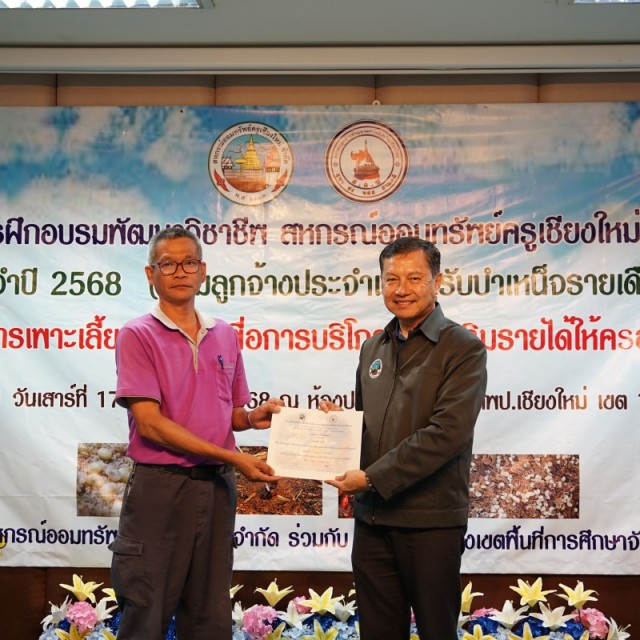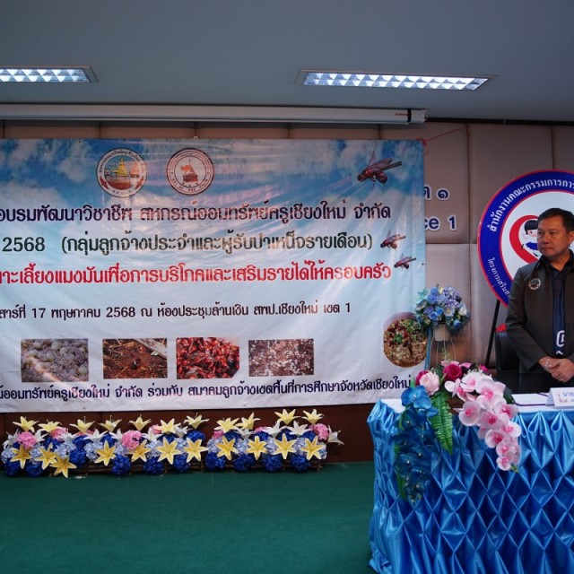 สหกรณ์ออมทรัพย์ครูเชียงใหม่ จำกัด ร่วมกับ สมาคมลูกจ้างเขตพื้นที่การศึกษาจังหวัดเชียงใหม่ จัดโครงการฝึกอบรมพัฒนาวิชาชีพ(กลุ่มลูกจ้างประจำเเละผู้รับบำเน็จรายเดือน) ประจำปี 2568 รุ่นที่ 1 ในวันที่ 17 พฤษภาคม 2568 ณ ห้องประชุมล้านเงิน สพป.เชียงใหม่ เขต 1