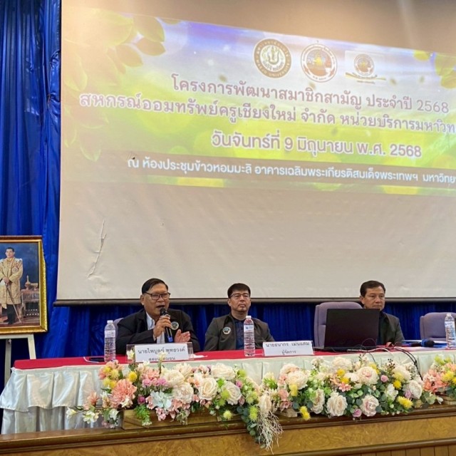 นายสุทัศน์ ประสาธน์สุวรรณ์ ประธานกรรมการสหกรณ์ออมทรัพย์ครูเชียงใหม่ จำกัด เป็นประธานเปิดโครงการพัฒนาสมาชิกสามัญในหน่วยบริการ ปี 2568 ของหน่วยบริการ ม.แแม่โจ้ โดยมี นายอดิศร คันธรส รองประธานกรรมการ นายจำรัส คำมูล กรรมการการศึกษา นายสมยงค์ คำอ้าย กรรมการเงินกู้ และนายธนากร เม่นเเต้ม ผู้จัดการสหกรณ์ฯ เป็นวิทยากร พร้อมฝ่ายจัดการของสหกรณ์ฯ ร่วมให้คำปรึกษาแก่สมาชิกที่เข้าร่วมโครงการ โดยโครงการดังกล่าวจัดขึ้นวันที่ 9 มิถุนายน 2568 ณ อาคารเฉลิมพระเกียรติมหาวิทยาลัยแม่โจ้ พร้อมกันนี้ได้ลงพื้นที่ตรวจเยี่ยมดูความเรียบร้อยของหน่วยบริการ เพื่อให้สมาชิกผู้มาใช้บริการได้รับประโยชน์สูงสุด ณ หน่วยบริการ ม.เเม่โจ้ จังหวัดเชียงใหม่