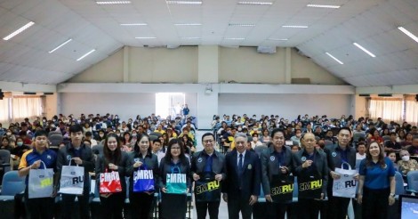 รองศาสตราจารย์ ดร.ชาตรี มณีโกศล อธิการบดี กล่าวให้การต้อนรับ เเละ