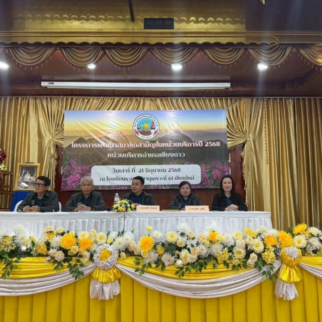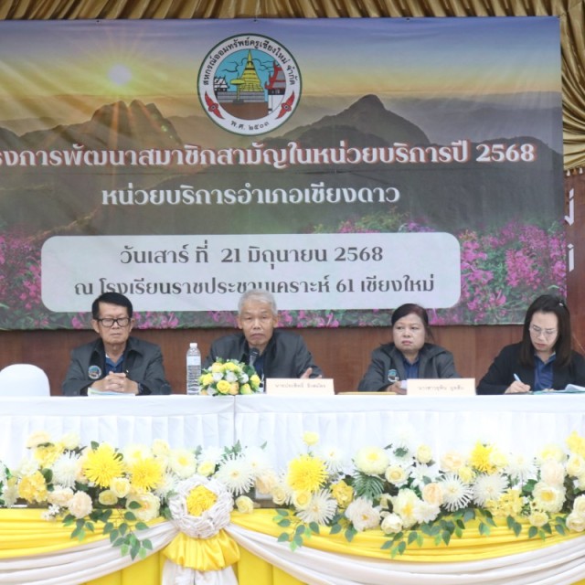 นายวิทยา คำฮอม รองประธานกรรมการสหกรณ์ออมทรัพย์ครูเชียงใหม่ จำกัด เป็นประธานเปิดโครงการพัฒนาสมาชิกสามัญในหน่วยบริการ ปี 2568 ของหน่วยบริการ อำเภอเชียงดาว โดยมี