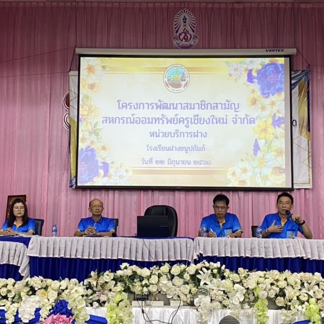 เมื่อวันที่ 22 มิถุนายน 2568 นายประเวทย์ สันยาย เลขานุการ เป็นประธานเปิดโครงการพัฒนาสมาชิกสามัญในหน่วยบริการ ปี 2568 ของหน่วยบริการอำเภอฝาง โดยมี นายวสันต์ ขอดศิริ ประธานกรรมการการศึกษา นายณัฐวุฒิ รุ่งรัตนไชย ประธานกรรมการเงินกู้ นายเชิดชัย ทิพยวารีวงศ์ กรรมการการศึกษา และนางสาวธิดา ด้วงมะโน รองผู้จัดการ สหกรณ์ฯ เป็นวิทยากร พร้อมฝ่ายจัดการของสหกรณ์ฯ ร่วมให้คำปรึกษาการแก่สมาชิกที่ร่วมงานเเละให้ช่วยเหลือที่สมาชิกในการลงทะเบียนแอปพลิเคชัน CMCOOP สหกรณ์ออมทรัพย์ครูเชียงใหม่ จำกัด ณ โรงเรียนฝางชนูปถัมภ์