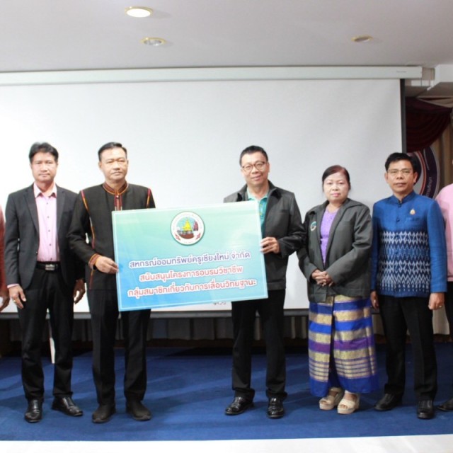 วันที่ 18 กรกฎาคม 2568 นายสงัด ร่มโพธิ์ กรรมการ สหกรณ์ออมทรัพย์ครูเชียงใหม่ จำกัด พบปะผู้บริหารสถานศึกษา ข้าราชการครูและบุคลากรทางการศึกษา ในโครงการอบรมเชิงปฏิบัติการพัฒนาครูและบุคลากรทางการศึกษาเพื่อการประเมินตำแหน่งและวิทยฐานะตามหลักเกณฑ์และวิธีการฯ วPA ของสำนักงานเขตพื้นที่การศึกษาประถมศึกษาเชียงใหม่ เขต 5 พร้อมมอบเงินสนับสนุบโครงการฯ จำนวน 12,000 บาท แก่ นายประจักษ์ สระแก้ว ผู้อำนวยการสำนักงานเขตพื้นที่การศึกษาประถมศึกษาเชียงใหม่ เขต 5 ณ ห้องประชุมออบหลวง สำนักงานเขตพื้นที่การศึกษาประถมศึกษาเชียงใหม่ เขต 5 อำเภอฮอด จังหวัดเชียงใหม่