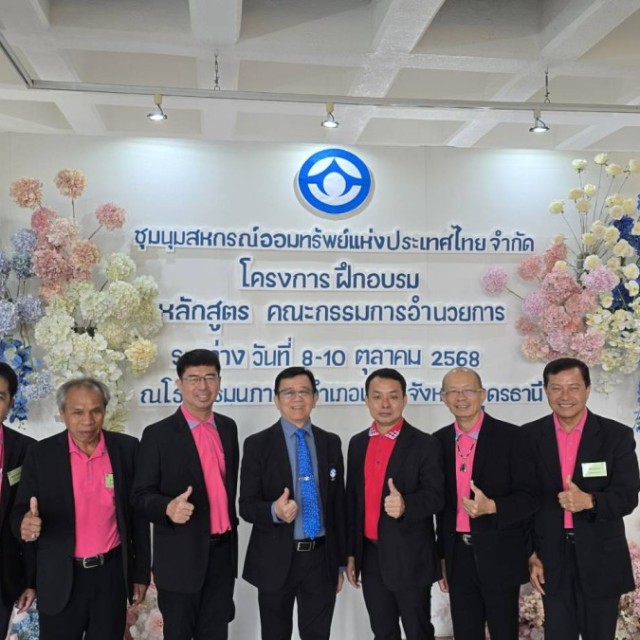 นายสุทัศน์ ประสาธน์สุวรรณ์ นายวิทยา คำฮอม นายอดิศร คันธรส นายนิวาส หล้าเต็น นายณัฐวุฒิ รุ่งรัตนไชย นายวสันต์ ขอดศิริ คณะกรรมการอำนวยการ เข้าร่วมโครงการฝึกอบรม หลักสูตร “คณะกรรมการอำนวยการ” ชุมนุมสหกรณ์ออมทรัพย์แห่งประเทศไทย จำกัด (ชสอ.) ระหว่างวันที่ 8-10 ตุลาคม 2568 ณ โรงแรมนภาลัย อำเภอเมือง จังหวัดอุดรธานี