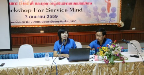 เมื่อวันเสาร์ที่ 3 กันยายน 2559 สหกรณ์ออมทรัพย์ครูเชียงใหม่ จำกัด ได้จัดโครงการอบรมเชิงปฏิบัติการ “นวัตกรรมการให้บริการสมาชิก” (Workshop for Service Mined) ระหว่างคณะกรรมการดำเนินการ เจ้าหน้าที่ และบุคลากรผู้ปฏิบัติงานในหน่วยบริการ โดยมีวัตถุประสงค์เพื่อส่งเสริมความรู้ ความเข้าใจ ตลอดจนแนวปฏิบัติในการใช้บริการด้านต่าง ๆ ของสหกรณ์ที่ได้พัฒนาระบบเทคโนโลยีสารสนเทศในการให้บริการรูปแบบใหม่ให้สามารถตอบสนองความต้องการและสร้างความพึงพอใจแก่สมาชิก จากการใช้บริการในทุก ๆ ด้าน