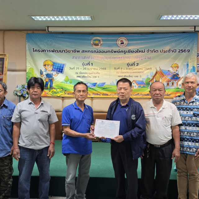 โครงการฝึกอบรมวิชาชีพ ประจำปี 2569 (กลุ่มสมาชิกพนักงานบริการและลูกจ้างประจำ) หลักสูตร “การติดตั้งและซ่อมบำรุงโซล่าเซลล์” รุ่นที่ 1