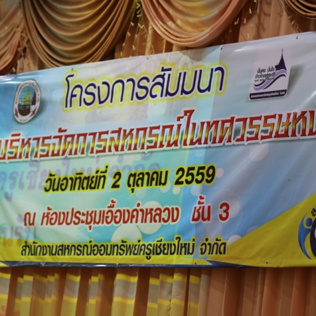 สหกรณ์ออมทรัพย์ครูเชียงใหม่ จำกัด จัด “โครงการสัมมนาการบริหารจัดการสหกรณ์ในทศวรรษหน้า” เมื่อวันอาทิตย์ที่ 2 ตุลาคม 2559 เวลา 09.00 น. ณ ห้องประชุมเอื้องคำหลวง ชั้น 3 สำนักงานสหกรณ์ออมทรัพย์ครูเชียงใหม่ จำกัด โดยมี คณะกรรมการดำเนินการ ผู้ตรวจสอบกิจการ อดีตประธาน อดีตผู้จัดการ สมาชิกชั้นนำ หัวหน้าหน่วยบริการ และฝ่ายจัดการเข้าร่วมการสัมมนาและแลกเปลี่ยนข้อคิดเห็นในการบริหารจัดการสหกรณ์ในอนาคตให้สอดคล้องและเหมาะสมกับภาวการณ์ในปัจจุบัน โดยยึดรากฐานของหลักการสหกรณ์เป็นสำคัญ