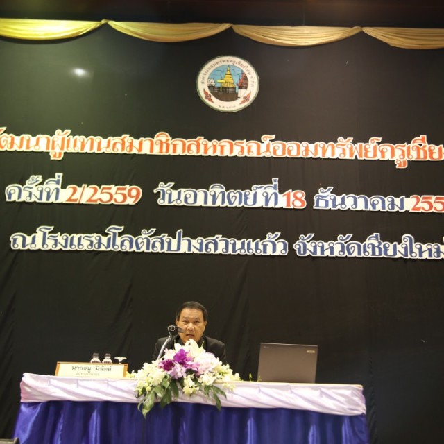 สหกรณ์ออมทรัพย์ครูเชียงใหม่ จำกัด จัดโครงการพัฒนาผู้แทนสมาชิก ครั้งที่ 2/2559 โดยมีนายธนู มีสัตย์ ประธานกรรมการดำเนินการเป็นประธานในพิธีเปิด ภาคเช้า เป็นการบรรยายบทบาทหน้าที่ของผู้แทนสมาชิก โดย นายจรูญ วงค์คำ ผู้จัดการ และการสัมมนาหัวข้อ หลักการ อุดมการณ์ และวิธีการสหกรณ์ โดย นางสุมิตรา อภิชัย สหกรณ์จังหวัดเชียงใหม่ ภาคบ่ายเป็นการประชาพิจารณ์การจัดทำแผนพัฒนาสหกรณ์ประจำปี 2560 มีผู้แทนสมาชิกเข้าร่วมจำนวนกว่า 960 คน เมื่อวันอาทิตย์ที่ 18 ธันวาคม 2559 ณ ห้องประชุมบ้านล้านตอง โรงแรมโลตัสปางสวนแก้ว