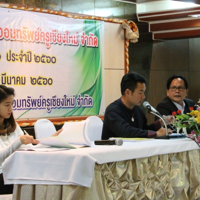 เมื่อวันเสาร์ที่ 4 มีนาคม 2560 เวลา 13.00 น. สหกรณ์ออมทรัพย์ครูเชียงใหม่จำกัด จัดประชุมกิจการสหกรณ์ ไตรมาส 1 ประจำปี 2560 ณ ห้องประชุมเอื้องเงิน ชั้น 2 สำนักงานสหกรณ์ออมทรัพย์ครูเชียงใหม่ จำกัด โดยมี นายเอนก คำจำรูญ ประธานกรรมการดำเนินการ เป็นประธานในการประชุม โดยได้ มีการชี้แจงแนวนโยบายการบริหารงานสหกรณ์ ปี 2560 มี คณะกรรมการดำเนินการ ผู้ตรวจสอบกิจการ ประธานกรรมการ หัวหน้าหน่วยบริการและผู้ประสานงานหน่วยบริการ และฝ่ายจัดการ เข้าร่วมประชุม เพื่อแลกเปลี่ยนข้อคิดเห็นและรับฟังข้อเสนอแนะ จากหน่วยบริการ เพื่อให้คณะกรรมการดำเนินการได้รับทราบและพิจารณานำไปสู่การพัฒนาและกำหนดเป็นนโยบายสู่การพัฒนาสหกรณ์ต่อไป