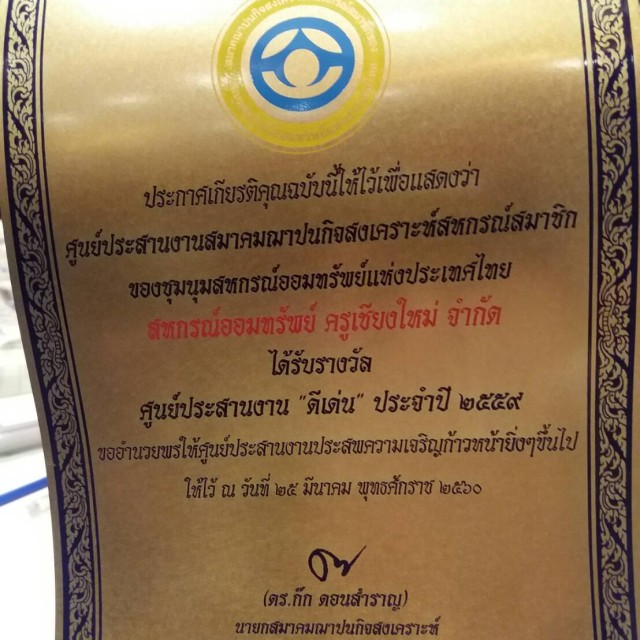 ประจำปี 2559” จาก ศูนย์ประสานงานสมาคมฌาปนกิจาสงเคราะห์สหกรณ์สมาชิกของชุมนุมสหกรณ์ออมทรัพย์แห่งประเทศไทย