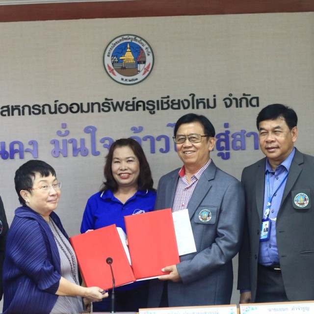 เมื่อวันที่ 14 พฤษภาคม 2561 นายสุทัศน์ ประสาธน์สุวรรณ์ ประธานกรรมการ สอ.ชม. พร้อมด้วย นางสาวศศิธร ศรีอรุณ ที่ปรึกษาด้านการขาย ผู้แทน บมจ.เอ็ม บี เค ไลฟ์ ประกันชีวิต ร่วมลงนามสัญญาความตกลงร่วมมือความคุ้มครองโครงการประกันชีวิตกลุ่ม กรมธรรม์ที่4 สหกรณ์ออมทรัพย์ครูเชียงใหม่ จำกัด โดยมีนายเอนก คำจำรูญ ผู้จัดการและคณะเจ้าหน้าที่ ร่วมเป็นสักขีพยานและถ่ายภาพเป็นที่ระลึก ณ ห้องประชุมเอื้องผึ้ง สำนักงานสหกรณ์ออมทรัพย์ครูเชียงใหม่ จำกัด