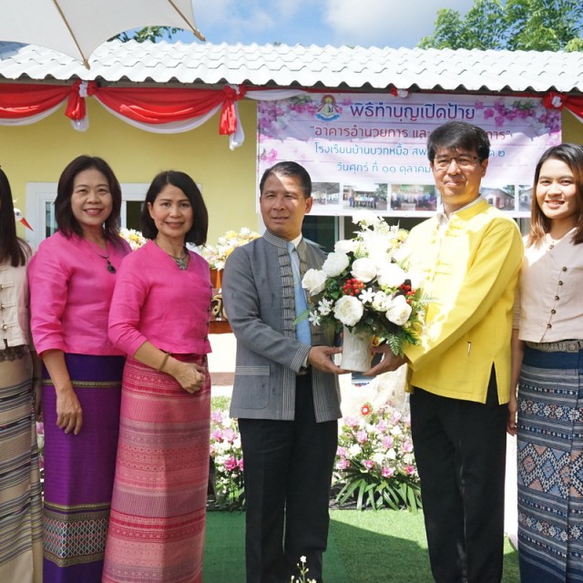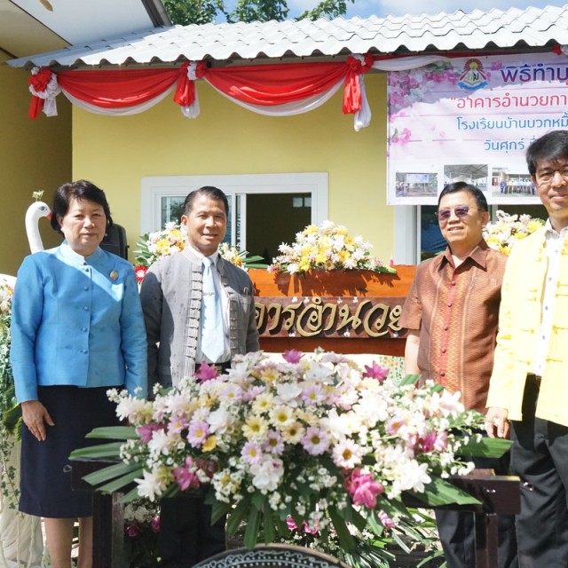 คณะกรรมการดำเนินการ ร่วมพิธีทำบุญเปิดป้ายอาคารอำนวยการ โรงเรียนบ้านบวกหมื้อ อ.แม่แตง
