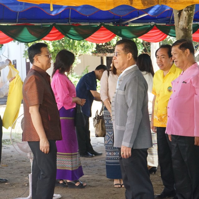 นายสุทัศน์ ประสาธน์สุวรรณ์ ได้กล่าวแสดงความยินดีแก่ นายธนากร เม่นแต้ม ผู้อำนวยการโรงเรียนบ้านบวกหมื้อ