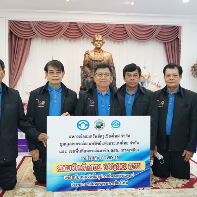 สหกรณ์ออมทรัพย์ครูเชียงใหม่ จำกัด ชุมนุมสหกรณ์ออมทรัพย์แห่งประเทศไทย จำกัด และ เขตพื้นที่สหกรณ์สมาชิก ชสอ. (ภาคเหนือ) มอบเงินจำนวน 300,000 บาท “โครงการสหกรณ์ไทยต้านภัยโควิด-19”
