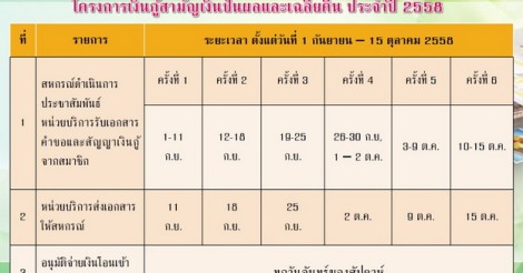 ปฏิทินการให้สินเชื่อ "โครงการเงินกู้สามัญเงินปันผลและเฉลี่ยคืน ประจำปี 2558"