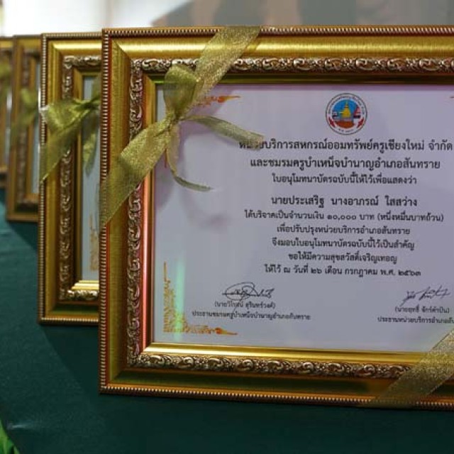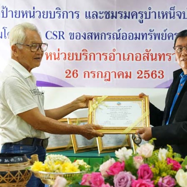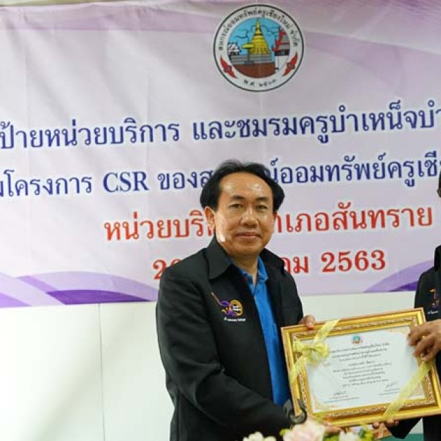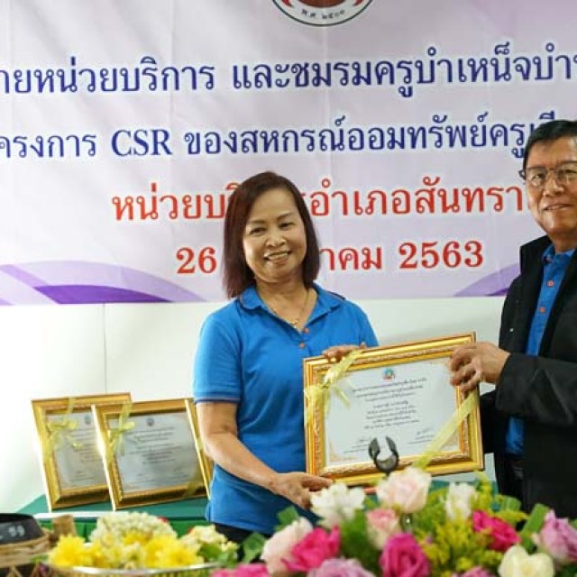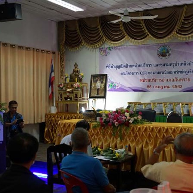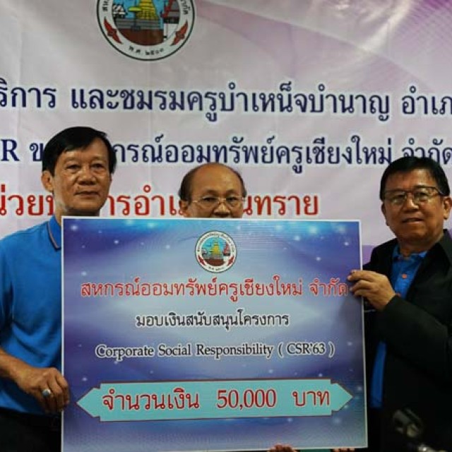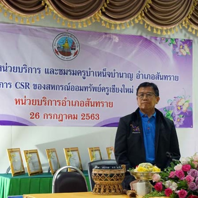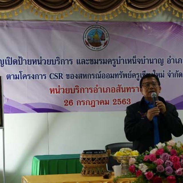 เมื่อวันที่ 26 กรกฎาคม 2563 นายสุทัศน์ ประสาธน์สุวรรณ์ ประธานกรรมการ สหกรณ์ออมทรัพย์ครูเชียงใหม่ จำกัด เป็นประธานพิธีเปิดป้ายหน่วยบริการอำเภอสันทราย ณ สำนักงานหน่วยบริการอำเภอสันทราย จ.เชียงใหม่ ในการดำเนินงานตามโครงการความรับผิดชอบที่สหกรณ์ฯ มีต่อสังคมและสิ่งแวดล้อม หรือ Corporate Social Responsibility (CSR) ปีที่ 10 ประจำปี 2563 โดยมีนายวินิตย์ กันธรรม หัวหน้าหน่วยบริการ หน่วยบริการอำเภอสันทราย เป็นผู้กล่าวรายงานวัตถุประสงค์ของโครงการครั้งนี้