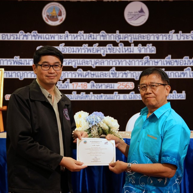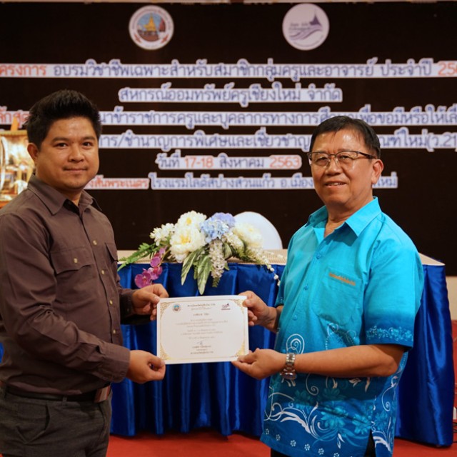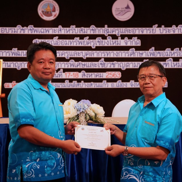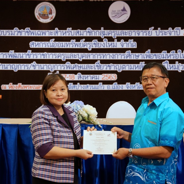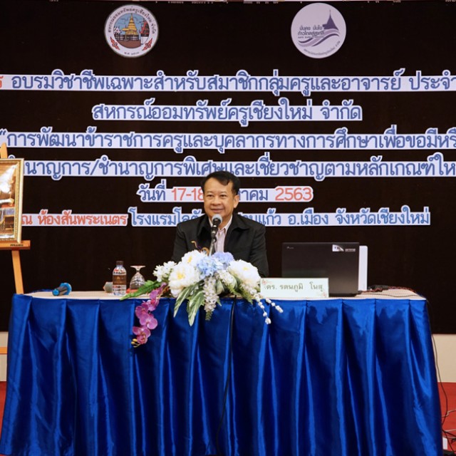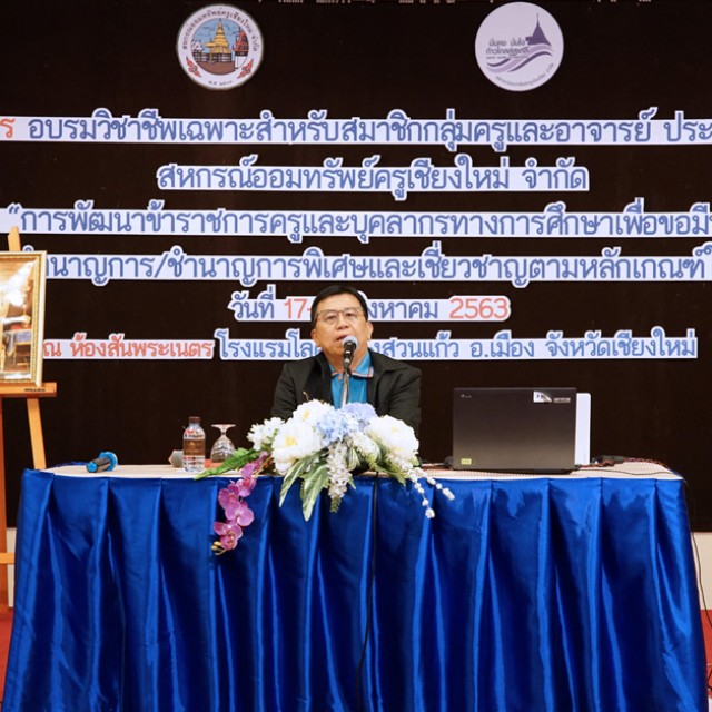 วันเสาร์ที่ 17 ตุลาคม พ.ศ. 2563 นายสุทัศน์ ประสาธน์สุวรรณ์ ประธานกรรมการ สหกรณ์ออมทรัพย์ครูเชียงใหม่ จำกัด เป็นประธานเปิดการอบรมเชิงปฏิบัติการโครงการฝึกอบรมวิชาชีพเฉพาะสำหรับสมาชิกกลุ่มครูและอาจารย์ ประจำปี 2563 หลักสูตร “การพัฒนาข้าราชการครูและบุคลากรทางการศึกษาเพื่อขอมีหรือให้เลื่อนวิทยฐานะชำนาญการ/ชำนาญพิเศษและเชี่ยวชาญตามหลักเกณฑ์ใหม่(ว.21)” ระหว่างวันที่ 17-18 ตุลาคม 2563 ณ ห้องสันพระเนตร โรงแรมโลตัสปางสวนแก้ว อำเภอเมือง จังหวัดเชียงใหม่