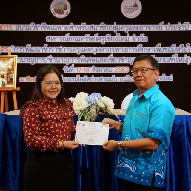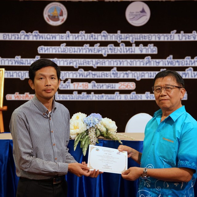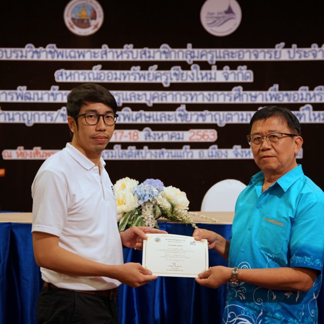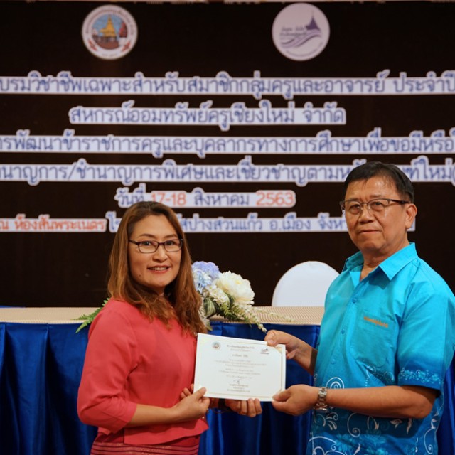 โดยมี นายจำรัส คำมูล ประธานกรรมการศึกษา กล่าวรายงานถึงวัตถุประสงค์ของการจัดการอบรมครั้งนี้ เพื่อให้สมาชิกผู้เข้าร่วมฝึกอบรมในครั้งนี้มีความรู้ความเข้าใจเกี่ยวกับหลักเกณฑ์และวิธีการประเมินแนวใหม่(ว.21/2560) และส่งเสริมให้สมาชิกมีการพัฒนาตนเองและพัฒนาวิชาชีพอย่างต่อเนื่องสามารถสร้างความเข้มแข็งให้กับวิชาชีพ และมีสมรรถนะที่เหมาะสม โดยรับความอนุเคราะห์จาก ดร.รตนภูมิ โนสุ ผู้อำนวยการสำนักงานเขตพื้นที่การศึกษาประถมศึกษาเชียงใหม่ เขต 1, ดร.ปาริชาติ เภสัชชา ศึกษานิเทศก์เชี่ยวชาญ ผู้อำนวยการกลุ่มนิเทศ ติดตามและประเมินผลการจัดการศึกษา และ นางจันทกานต์ สิทธิราช ศึกษานิเทศก์ชำนาญการพิเศษ สำนักงานเขตพื้นที่การศึกษาประถมศึกษาเชียงใหม่ เขต 2 เป็นวิทยากรในการอบรม ซึ่งมีผู้เข้าร่วมฝึกอบรมจำนวนกว่า 120 คน บรรยากาศในการฝึกอบรมครั้งนี้มีการฝึกการพัฒนาการเรียนรู้การพัฒนาตนเอง Workshop เชิงปฏิบัติการ และการเก็บสะสมผลงานแบบ Logbook ที่สามารถนำไปต่อยอดใช้งานได้จริงทันทีภายหลังเสร็จสิ้นการสัมมนา