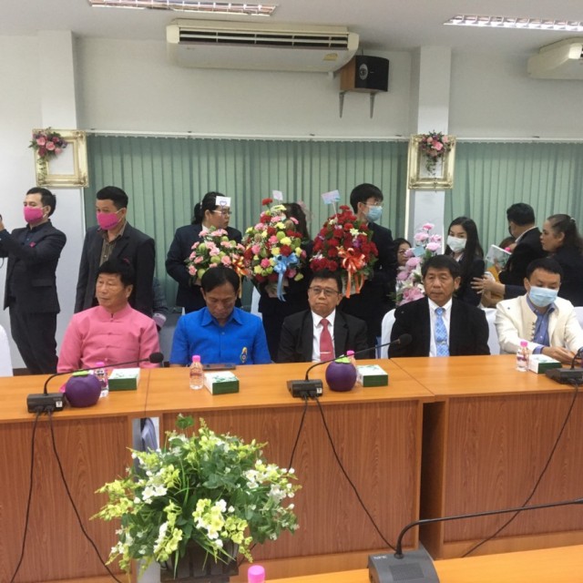 นายสุทัศน์ ประสาธน์สุวรรณ์ ประธานกรรมการ สหกรณ์ออมทรัพย์ครูเชียงใหม่ จำกัด พร้อมด้วยนายประพันธ์ จิโนด้วง เลขานุการ และนายไพบูลย์ พุทธวงค์ ที่ปรึกษาด้านการบริหารงานสหกรณ์ ร่วมแสดงความยินดี