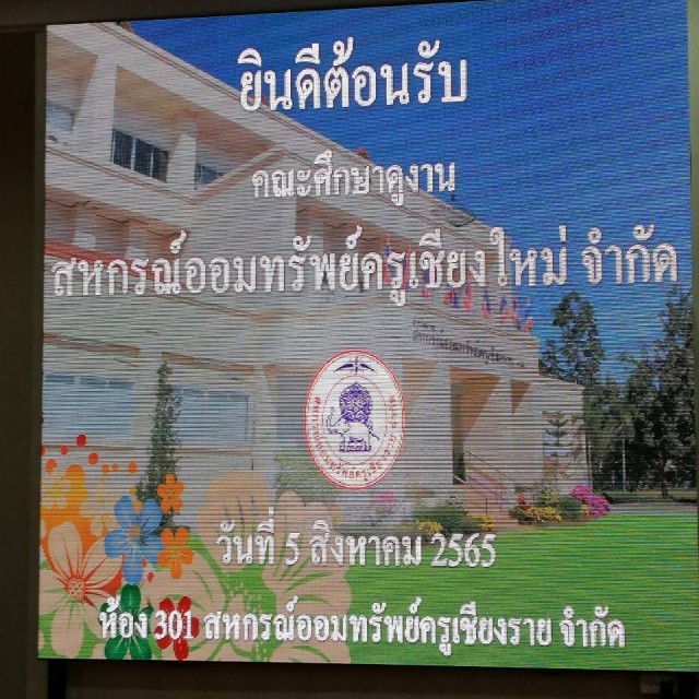 เมื่อวันที่ 5-6 สิงหาคม 2565 หน่วยบริการอำเภอสันป่าตอง สหกรณ์ออมทรัพย์ครูเชียงใหม่ จำกัด เข้าศึกษาดูงานและเยี่ยมชมกิจการ สหกรณ์ออมทรัพย์ครูเชียงราย จำกัด ตามโครงการพัฒนาสมาชิกของหน่วยบริการ ประจำปี 2565(กลุ่มผู้แทนสมาชิก) และอบรมเรื่อง “การใช้บริการด้านการเงินโดยใช้ระบบ CMCOOP Online & Internet Banking” โดยได้รับเกียรติจาก นายนิพนธ์ รัตนนิลอมร รองประธานกรรมการ สหกรณ์ออมทรัพย์ครูเชียงใหม่ จำกัด เป็นวิทยากรในโครงการ ณ ห้องประชุมสำนักงานสหกรณ์ออมทรัพย์ครูเชียงราย จำกัด และห้องประชุมบ้านน้ำรีสอร์ท จังหวัดเชียงราย