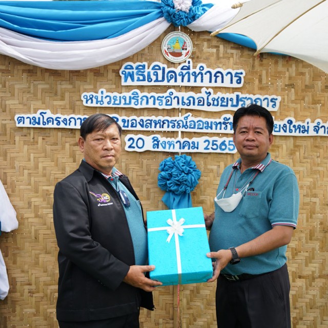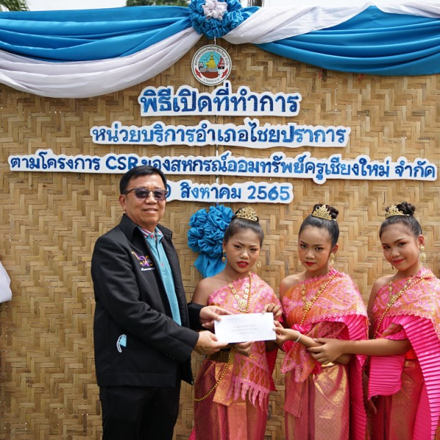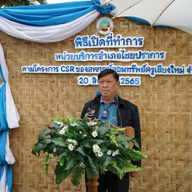 นายณรงศักดิ์ โกเสนตอ ประธานกรรมการหน่วยบริการอำเภอไชยปราการ ให้การต้อนรับแขกผู้มีเกียรติ ในงานเปิดป้าย “สำนักงานหน่วยบริการอำเภอไชยปราการ” โดยมีนายวินิตย์ กันธรรม ประธานกรรมการศึกษา สหกรณ์ออมทรัพย์ครูเชียงใหม่ จำกัด ได้กล่าวรายงานต่อประธานในพิธี นายไพบูลย์ พุทธวงค์ ประธานกรรมการ สหกรณ์ออมทรัพย์ครูเชียงใหม่ จำกัด พร้อมมอบเงินสนับสนุนโครงการ จำนวน 100,000 บาท ตามโครงการความรับผิดชอบที่สหกรณ์ฯ มีต่อสังคม ชุมชนและสิ่งแวดล้อม (CSR) ปีที่ 12 ประจำปี 2565 และร่วมสมทบโครงการอีกจำนวน 50,000 บาท เมื่อวันที่ 20 สิงหาคม 2565 ณ หน่วยบริการอำเภอไชยปราการ (โรงเรียนวัดบ้านท่า) ตำบลปงตำ อำเภอไชยปราการ จังหวัดเชียงใหม่