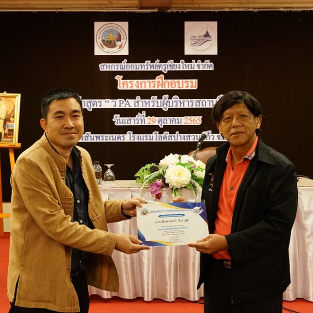 เมื่อวันที่ 29 ตุลาคม 2565 นายนิพนธ์ รัตนนิลอมร รองประธานกรรมการ สหกรณ์ออมทรัพย์ครูเชียงใหม่ จำกัด ได้ให้เกียรติเป็นประธาน การอบรมเชิงปฏิบัติการ การพัฒนาครู ผู้บริหารที่สอดคล้องกับความก้าวหน้าในวิชาชีพตามเกณฑ์ ว.PA โดยใช้เทคนิคการ PLC (With Growth Mindset) โดยได้รับเกียรติจาก ดร.ศุภโชค ปิยะสันติ์ ผู้อำนวยการโรงเรียนบ้านห้วยไร่สามัคคี อำเภอแม่ฟ้าหลวง จังหวัดเชียงราย และนายดนัยวัฒน์ มณี ผู้อำนวยการโรงเรียนบ้านปางมะหัน อำเภอแม่ฟ้าหลวง จังหวัดเชียงราย เป็นวิทยากรในครั้งนี้ ณ ห้องสันพระเนตร โรงแรมโลตัสปางสวนแก้ว อำเภอเมือง จังหวัดเชียงใหม่