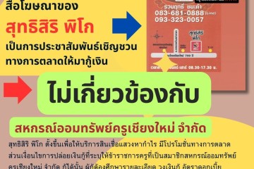 สอบถามเพิ่มเติม... กลุ่มงานสินเชื่อ โทร: 0 5385 1888 ต่อ 600-607 มือถือ: 08 9635 1212, 09 2224 6373, ...
