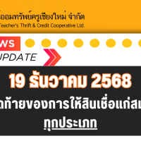 19 ธันวาคม 2568 วันสุดท้ายของการให้สินเชื่อแก่สมาชิกทุกประเภท