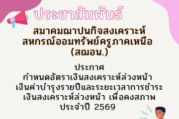 สมาคมฌาปนกิจสงเคราะห์สหกรณ์ออมทรัพย์ครูภาคเหนือ(สฌอน.) กำหนดอัตราเงินสงเคราะห์ล่วงหน้าฯ เพื่อคงสภาพประจำปี 2569