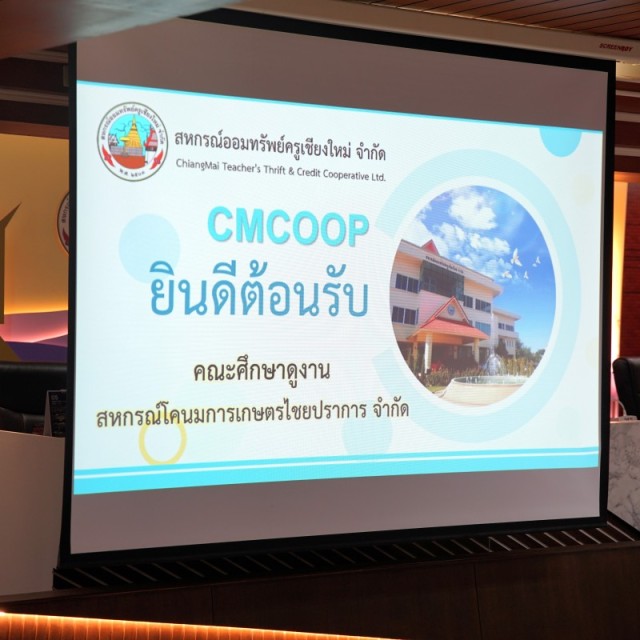 นายวิทยา คำฮอม รองประธานกรรมการ สหกรณ์ออมทรัพย์ครูเชียงใหม่ จำกัด พร้อมคณะกรรมการอำนวยการ เเละฝ่ายจัดการ ร่วมต้อนรับคณะ