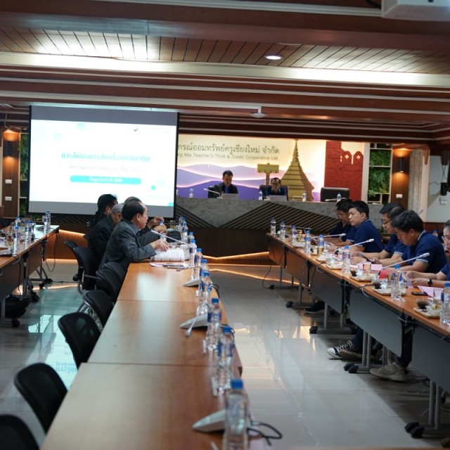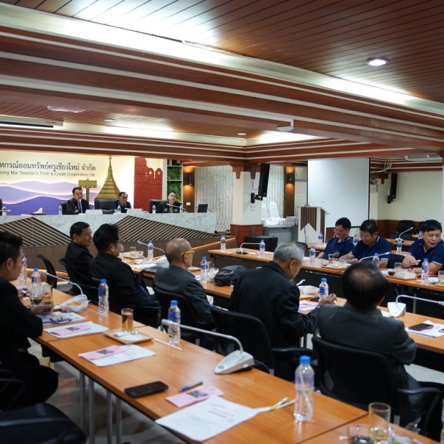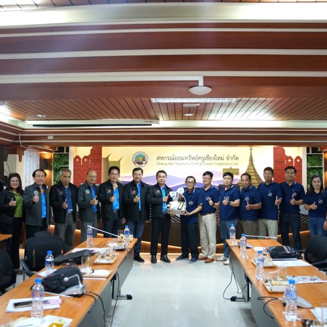 ในโอกาสเดินทางมาศึกษาดูงานการบริหารงานด้านสินเชื่อ และเยี่ยมชมกิจการ เพื่อเพิ่มศักยภาพ ประสบการณ์การดำเนินงานให้แก่บุคลากร และเสริมสร้างความสัมพันธ์อันดี แลกเปลี่ยนความคิดเห็นระหว่างสหกรณ์ ณ ห้องประชุมเอื้องเงิน ชั้น 2 สำนักงานสหกรณ์ออมทรัพย์ครูเชียงใหม่ จำกัด