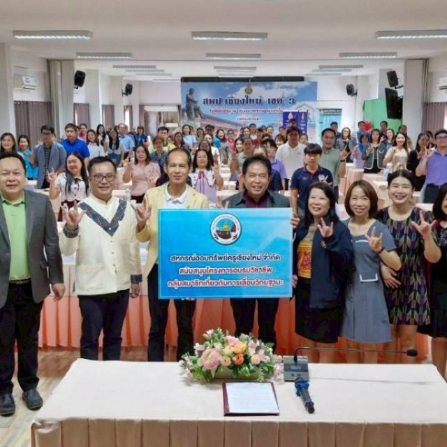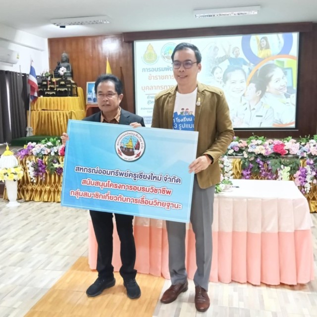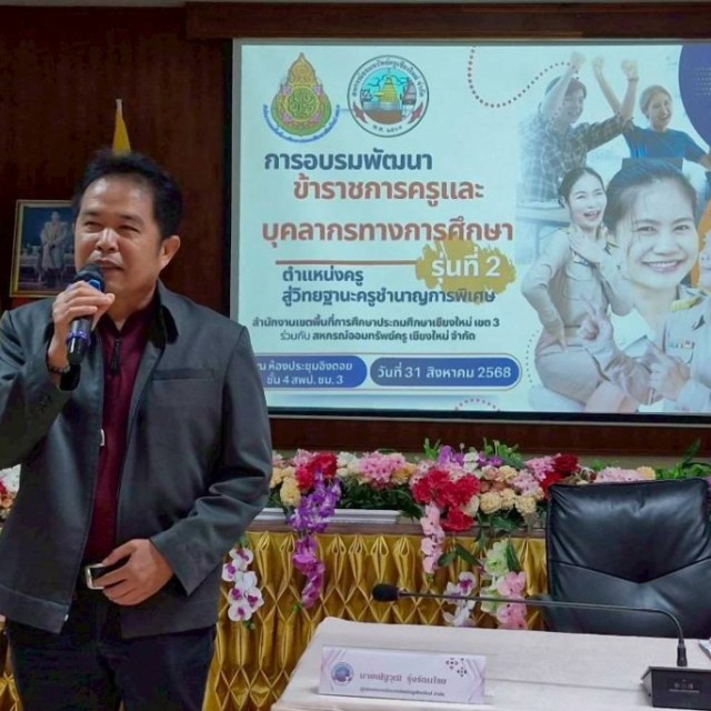 วันที่ 30 - 31 สิงหาคม 2568 นายณัฐวุฒิ รุ่งรัตนไชย กรรมการ สหกรณ์ออมทรัพย์ครูเชียงใหม่ จำกัด พบปะผู้บริหารสถานศึกษา ข้าราชการครูและบุคลากรทางการศึกษา เเละ มอบเงินสนุบสนุนโครงการฯ แก่ นายเรืองยศ ปันศิริ ผู้อำนวยการสำนักงานเขตพื้นที่การศึกษาประถมศึกษาเชียงใหม่ เขต 3 ณ ห้องประชุมอิงดอย ชั้น 4 สำนักงานเขตพื้นที่การศึกษาประถมศึกษาเชียงใหม่ เขต 3 การจัดการอบรมดังกล่าว เพื่อให้ข้าราชการครูและบุคลากรทางการศึกษา ตำแหน่งครูวิทยฐานะชำนาญการ ได้รับการอบรมพัฒนา สามารถพัฒนาตนเอง และมีสมรรถนะในการจัดการเรียนรู้และการจัดการชั้นเรียนที่มีประสิทธิภาพนำมาสู่กระบวนการขอเลื่อนเป็นวิทยฐานะครูชำนาญการพิเศษ เสนอขอรับการประเมิน เพื่อเลื่อนเป็นวิทยฐานะครูชำนาญการพิเศษได้อย่างถูกต้อง มีผู้เข้าร่วมจำนวน 135 คน