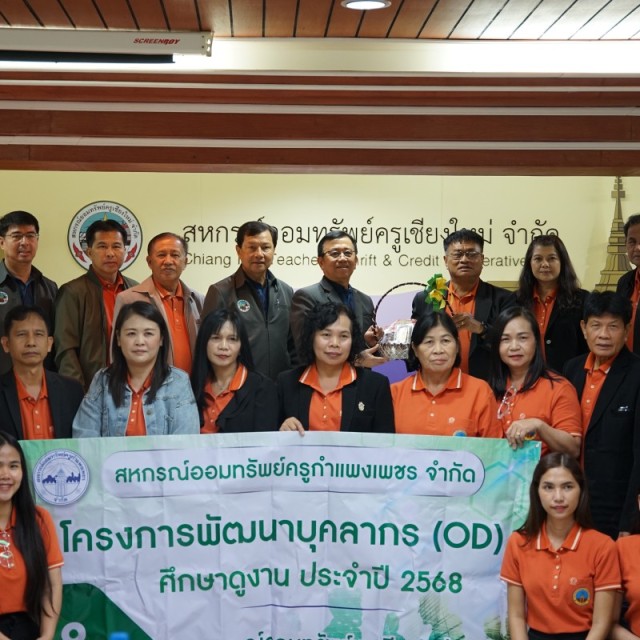 วันเสาร์ที่ 18 ตุลาคม 2568 นายสุทัศน์ ประสาธน์สุวรรณ์ ประธานกรรมการ สหกรณ์ออมทรัพย์ครูเชียงใหม่ จำกัด พร้อมด้วยคณะกรรมการดำเนินการ และฝ่ายจัดการ ให้การต้อนรับคณะศึกษาดูงานจากสหกรณ์ออมทรัพย์ครูกำแพงเพชร จำกัด นำโดย ดร.รมย์ พะโยม ประธานกรรมการ สหกรณ์ออมทรัพย์ครูกำแพงเพชร จำกัด พร้อมด้วยคณะกรรมการดำเนินการ ผู้ตรวจสอบกิจการ ที่ปรึกษากิตติมศักดิ์ ผู้จัดการ และเจ้าหน้าที่สมาคมฌาปนกิจสงเคราะห์ฯ รวมจำนวน 50 คน ในโอกาสเข้าเยี่ยมชมกิจการและศึกษาดูงาน เพื่อแลกเปลี่ยนเรียนรู้ระหว่างสหกรณ์ฯ นำไปสู่การพัฒนากิจการเเละเป็นการสร้างสายสัมพันธ์เชื่อมโยงเครือข่าย ณ ห้องประชุมเอื้องเงิน ชั้น 2 สำนักงานสหกรณ์ออมทรัพย์ครูเชียงใหม่ จำกัด