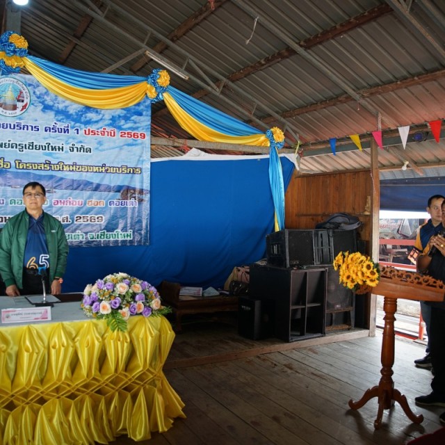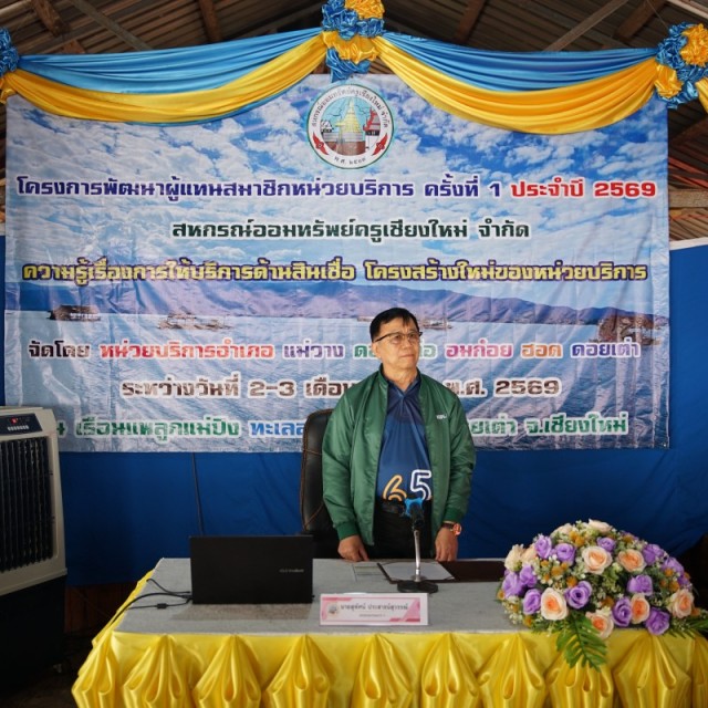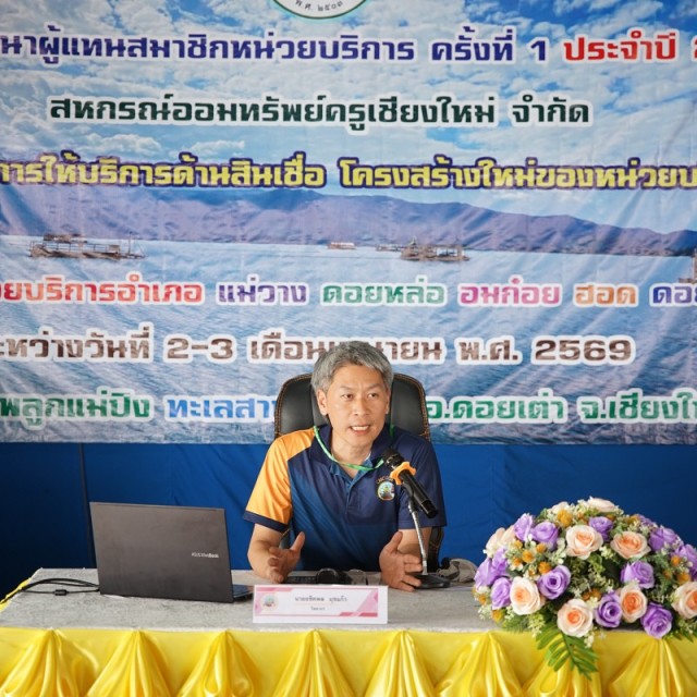 นายสุทัศน์ ประสาธน์สุวรรณ์ ประธานกรรมการ สหกรณ์ออมทรัพย์ครูเชียงใหม่ จำกัด เป็นประธานในพิธีเปิดโครงการพัฒนาผู้แทนสมาชิกหน่วยบริการ ครั้งที่ 1 ประจำปี 2569 ของหน่วยบริการอ.เเม่วาง อ.ดอยหล่อ อ.อมก๋อย อ.ฮอด อ.ดอยเต่า จัดกิจกรรมระหว่างวันที่ 2 - 3 เมษายน 2569 ณ ทะเลสาบดอยเต่า อ.ดอยเต่า จ.เชียงใหม่ โดยคุณณัฐวุฒิ นาคะเปรมินทร์ เเละคุณอชิตพล มุขแก้ว เป็นวิทยากรบรรยายในหัวข้อ "การให้บริการสินเชื่อเเละโครงสร้างใหม่ของหน่วยบริการ"