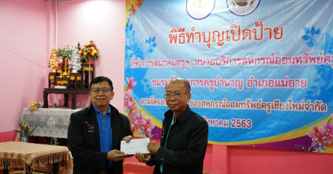 ในการดำเนินงานของโครงการความรับผิดชอบที่สหกรณ์ฯ มีต่อสังคมและสิ่งแวดล้อม หรือ Corporate Social Responsibility (CSR) ปีที่ 10 ประจำปี 2563 และมอบทุนสนับสนุนกิจกรรม การต่อเติม ซ่อมแซมและปรับปรุงอาคาร ภูมิทัศน์ และระบบเทคโนโลยีสารสนเทศ เป็นจำนวนเงิน 50,000 บาท